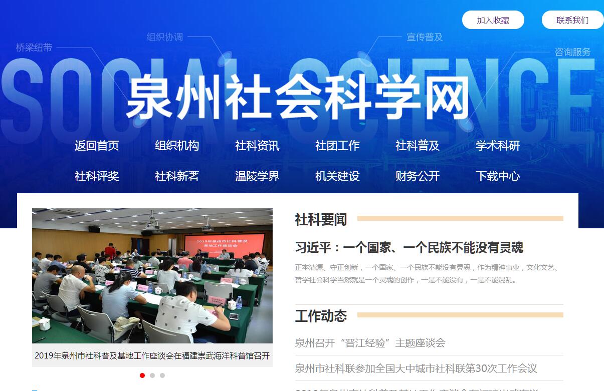 泉州市社会科学界联合会是中共泉州市委领导下的学术性人民团体,是加入本会的全市性哲学社会科学学会、研究会、协会、促进会和县(市、区)社科联的联合组织,是市委、市政府联系和团结全市社会科学界的桥梁纽带与发展哲学社会科学事业的助手。本会主要任务:(一)认真学习宣传贯彻党的基本理论、基本路线和基本纲领、基本经验;(二)依法对泉州市哲学社会科学学术团体进行业务指导和管理,指导县(市、区)社科联工作;(三)组织协调各类学术活动,开展国内外、省内外学术交流,加强社会科学与自然科学及其他实际工作部门的联系与合作。(四)开展哲学社会科学咨询服务和宣传普及工作,促进哲学社会科学研究成果的转化、推广和应用;(五)受福建省社会科学规划办公室委托,负责全市省社会科学规划项目的组织申报和实施管理工作;负责全市哲学社会科学研究规划的制定和实施,做好成果的推广和应用工作;(六)受泉州市人民政府委托,组织全市社会科学优秀成果评奖工作;(七)组织开展先进学会、先进学会工作者和社科科研、科普人才的评选表彰工作。(八)编辑出版学术性书刊、资料和科普读物。(九)反映社科界的意愿和诉求,维护社会科学工作者的正当权益。(十)完成市委、市政府交办的其它任务。