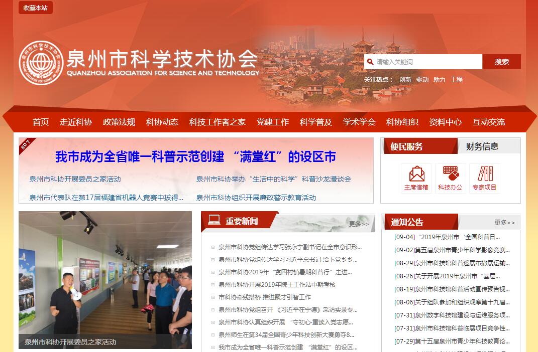 泉州市科学技术协会是全市科技工作者的群众组织,是市委领导下的人民团体,是市委、市政府联系科技工作者的桥梁和纽带,是推动泉州科技事业发展的重要力量。截至2018年6月,全市累计组建50家院士工作站、71家专家工作站、96个市级学会(协会、研究会)、11个县(市、区)科协、163个乡镇(街道)科协、2053个村(社区)科普协会(小组)、541家企业科协、18所高校科协、160所中小学校科协、536个农技协、12所农函大分校及149个乡镇辅导站。近年来,泉州市科协坚持“集成创新、项目带动、绩效管理、打造品牌、服务发展”的工作思路,以创新驱动助力工程为引领,带动“五大工程”深入实施,逐步打响“五大品牌”,靠有为赢得党委政府支持,“1+5”政策支撑体系实惠有力,在全省率先实现全国科普示范、福建省科普先进县(市、区)“满堂红”,多项工作走在全省乃至全国前列,多次得到中国科协、省科协及市委市政府主要领导批示表扬,获全国“创新驱动助力工程”优秀单位、全国院士专家工作站建设示范单位,多次获全国青少年科技创新大赛优秀组织奖、省青少年科技教育突出贡献奖、省青少年科技教育先进单位、省农函大工作先进集体、省级文明单位、党建工作先进单位等称号。