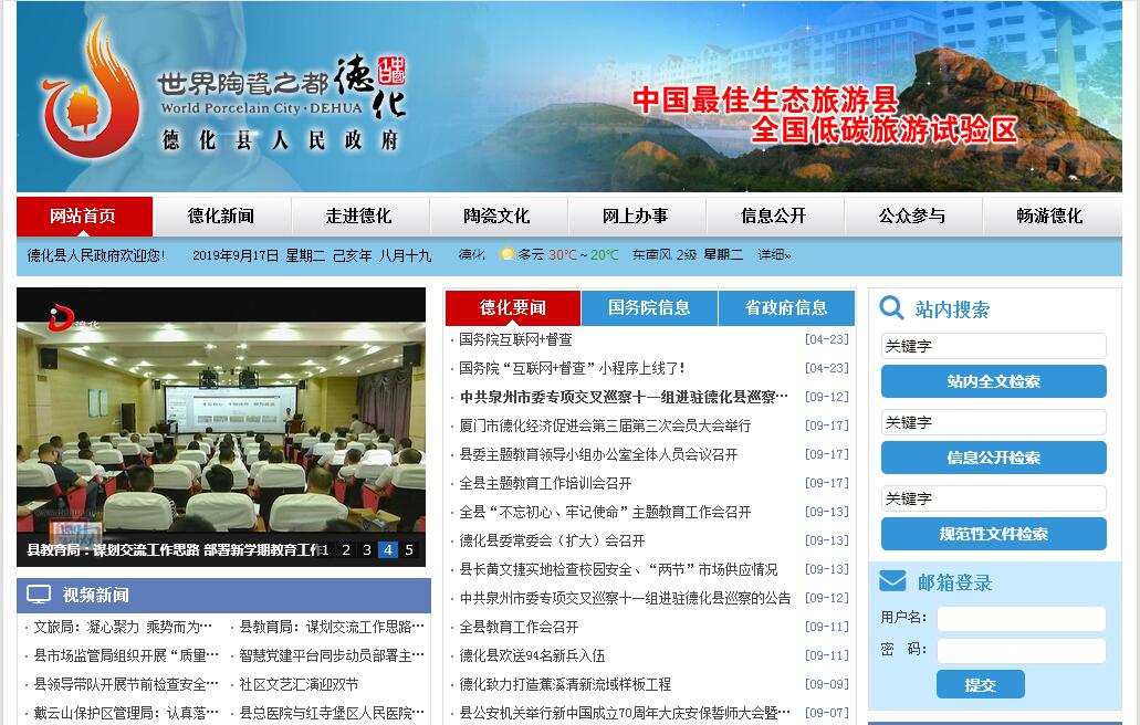 | 网站简介: 德化于五代后唐长兴四年(933年)置县,地处福建省中部、泉州市北部,县域面积2232平方公里,户籍人口34.1万,辖18个乡镇、214个行政村(社区)。境内山多、水足、矿富、瓷美,素有“闽中宝库”之称。陶瓷生产历史悠久,是我国陶瓷文化发祥地和三大古瓷都之一,陶瓷产品80%以上外销,销往190多个国家和地区,是福建省十大重点出口县(市)之一、全国最大的工艺陶瓷生产和出口基地。先后荣膺“世界陶瓷之都”、“中国陶瓷之乡”、“中国电子商务百佳县”、“中国最佳生态旅游县”、“中国小水电之乡”、“中国瓷都·德化”、“中国民间文化艺术之乡”、“中国早熟梨之乡”、“中国油茶之乡”、“中国竹子之乡”等称号。2017年,全县实现生产总值221.05亿元,一般公共预算总收入16.45亿元,其中一般公共预算收入11.02亿元。 |