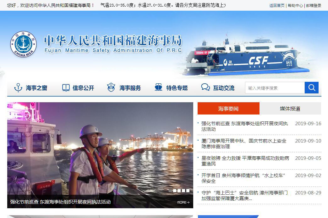 | 网站名称: | 中华人民共和国福建海事局 | ||