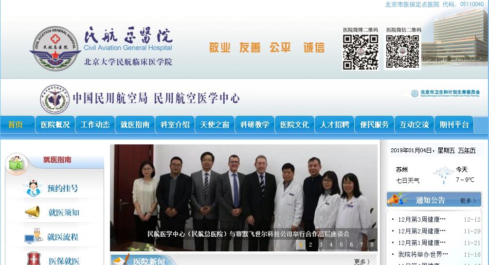 民航医学中心(民航总医院)始建于1982年,于2010年重新整合为民航医学中心,包括民航总医院、民用航空医学研究所、民用航空人员体检鉴定所和航空医学系培训部,是一所设备先进、科室齐全、服务优良、集医教研防于一体、具有航空医学特色的三级综合医院,也是全国民航唯一一所三级医院,同时承担着全国民航系统空勤人员体检鉴定、航空医学研究及民航体检鉴定医师培训工作。医院位于北京市朝阳区东部,北临朝阳路、南邻京通快速路和地铁八通线,地理位置优越。医院占地面积5万平方米,总建筑面积16万平方米,新建航空医学大楼即将投入使用,开放床位达到1000余张。目前医院在职职工1300余人,设有15个病区、31个临床医技科室,在心血管疾病介入治疗、血液透析及血液净化、高危妊娠诊治、椎间盘突出治疗和关节置换、腹腔镜微创手术、前列腺疾病的治疗等方面具有先进水平。内科设有8个专业:心血管内科、呼吸内科、消化内科、神经内科、肾内科、内分泌科、血液肿瘤科、老年病科;外科7个专业:普外科、肝胆外科、骨科、泌尿外科、神经外科、心胸外科、整形外科;妇产科8个专业:妇科、产科、计划生育、生殖健康与不孕症、优生学、妇女保健、围产期保健、更年期保健;儿科9个专业:小儿消化、小儿呼吸、小儿心脏病、小儿肾病、小儿血液病、小儿内分泌、小儿传染病、小儿遗传病;眼科、耳鼻咽喉头颈外科、口腔科、皮肤科、中医科、感染疾病科、急诊科、麻醉科、疼痛科、康复理疗科等科室也均设有相应的亚专业;医技科室8个,包括放射科、核医学科、检验科、药剂科、物理诊断科、病理科、高低压氧科等科室。设有1.5T核磁、64排CT、数字化减影血管造影机、SPECT、高低温高低压一体氧舱、层流手术室等大型医疗设备设施。多个科研项目获批民航局级科研课题立项,并获得首发基金和国家自然科学基金、北京市自然科学基金的资助。医院为首都文明单位,全国百姓放心示范医院,中央国家机关平安单位,首都平安示范医院。医院是通过国家教育部评估的北京大学临床教学医院,一直承担着北京大学医学部临床医学专业本科生、研究生的教学和临床实习工作,其中心血管内科、耳鼻咽喉头颈外科、妇产科B超、检验科、内分泌科是北京大学医学部硕士研究生培养点,外科、内科是北京市住院医师规范化培训基地,透析中心是北京市透析技术培训基地,妇产科和放射科是朝阳区孕产妇急救网络产科出血定点救治中心,各学科在相应的领域均发挥着重要的作用。中心是国际航空航天医学会委员单位,下设的民用航空人员体检鉴定所是全民航唯一一家航空人员三级体检鉴定机构,是全国民航航空人员体检鉴定医师培训基地,肩负着保障航空人员健康,完善中国航空医学体系建设,保障民航飞行安全的重任,承担着全民航特许鉴定飞行及延飞任务。航空医学研究所负责全民航航空人员心理测试及药品检测、航空环境卫生及有害生物检测,其中航空毒理药理和航空卫生环境两个实验室获得了国家级认可(CNAS)和实验室认证(CMA)。目前在研课题13项,在研项目经费已经达到了一千余万元,拥有国家级先进实验室设备和设施,拥有一支非常专业、高素质的研究队伍。“服务民航,面向社会”是我们的宗旨。多年来,我们一直倡导“医院发展以员工为中心,医疗服务以病人为中心”的办院理念,始终坚持“以普通医学为基础,以航空医学为引领”的发展方向,努力打造作风过硬、素质精良的医护团队,塑造以人为本、优质高效的服务品牌,以精益求精的态度和无私博爱的胸怀,向一流队伍、一流管理、一流技术、一流服务的现代化综合医院和具有国际水平的中国民用航空医学中心的奋斗目标迈进。