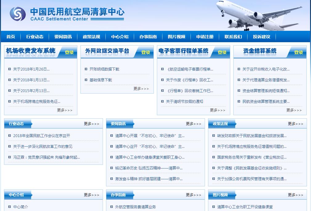 中国民用航空局清算中心是经中央机构编制委员会办公室批准成立的中国民用航空局直属事业单位,于2005年正式挂牌运行。作为民航资金综合管理部门,承担着民航行业资金统一清算的重要职责,同时肩负民航政府采购、国库集中支付、电子客票行程单等职责,为行业内资金高效流转提供坚强保障,在行业诚信体系建设、财经制度实施,以及促进行业发展方面发挥着越来越重要的作用。根据民航局赋予的职责,清算中心主要开展以下业务:1.负责民航发展基金(原民航基金)的征收与清算;2.负责民航发展基金(原机场建设费)的征收与清算;3.负责民航空管服务费清算;4.负责民航局及其所属单位的政府采购工作;5.负责民航局行政事业性收费;6.负责办理民航国库集中支付的相关工作;7.负责民航清算业务的培训与咨询。8.负责民航机场服务费清算;9.负责民航电子客票行程单日常管理工作;10.承担公务机票购买的相关工作。清算中心始终以“服务民航,科学发展”为宗旨,围绕民航安全发展,积极探索服务新举措,逐步形成以民航资金清算业务为核心,民航政府服务、民航财经政策研究、民航资金管理、技术保障,以及电子商务等五大相关业务协同发展的新格局。服务对象涵盖43家境内空中管制单位、境内外500余家航空公司、境内200余家机场、5000余家机票代理人、20万家行政事业单位。展望未来,清算中心将主动适应新常态,立足行业发展大局,按照“服务、发展、务实、创新”的理念,坚持改革创新精神,以夯实资金清算业务为基础,切实提高保障能力,加快推进各项业务,努力建成“国内一流、国际知名”的专业清算机构。