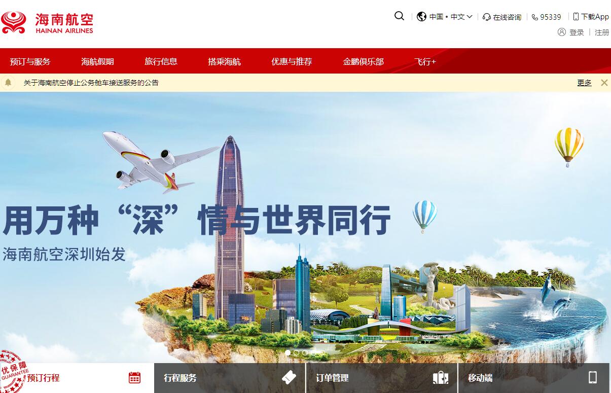 海南航空控股股份有限公司(以下简称海南航空)于1993年1月成立,起步于中国最大的经济特区海南省,致力于为旅客提供全方位无缝隙的航空服务。品牌目标:打造世界卓越航空品牌。品牌理念:相伴相惜 梦享飞行 FLY YOUR DREAMS。品牌使命:让旅客感受最人性化的飞行服务体验。品牌个性:活力、创新、现代东方神韵。品牌核心价值:人性化、文化体验、超越预期。我们对旅客未满足的需求感同身受,让每位旅客体验贴心、舒适、便捷的产品,感受温暖、细致的服务。通过将传统东方文化与现代东方创新能力与活力的有机融合,对通过人性化的服务便捷旅客出行进行更深层次的诠释与解读。从细节着眼,点亮平淡的航空出行体验,让旅客在高质量飞行体验中感受惊喜。海南航空品牌团队深入开展品牌调研,统筹制定公司品牌发展战略,在服务品牌及安全品牌建设方面不断发力,接连获得国际赞誉,结合国际航线开航策划组织首航系列活动,国际化品牌形象深入人心。1993年至今,海南航空连续安全运营25年,累计安全运行超过660万飞行小时,拥有波音737、787系列和空客330系列为主的年轻豪华机队,并于近期引进了空客A350-900宽体客机。截至2018年上半年,海南航空及旗下控股子公司共运营飞机400余架,在北京、广州、深圳、三亚、成都、重庆、杭州、长沙、郑州、呼和浩特、贵阳等24个城市建立航空营运基地/分公司,航线网络遍布中国,覆盖亚洲,辐射欧洲、北美洲、大洋洲,开通了国内外航线1700余条,通航城市近220个,致力于为旅客打造安全舒适的旅行体验。自2011年起,海南航空凭借高品质的服务及持续多年的创新,已连续八年荣膺SKYTRAX“世界五星航空公司”称号。此外,在2017年基础上,海南航空再度入围SKYTRAX“全球航空公司TOP10”,并上升至第8位,成为中国内地首个入围并蝉联该项荣誉的航司。