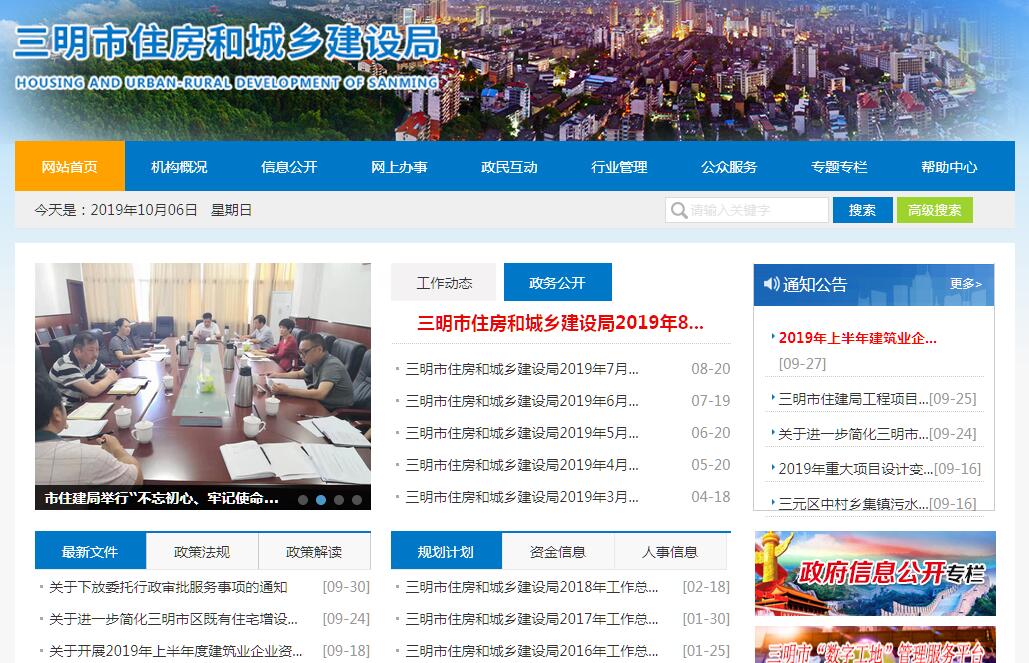 三明市住房和城乡建设局主要职责:(一)贯彻执行国家和省有关住房和城乡建设的法律、法规、规章和政策,承担规范全市住房和城乡建设管理秩序的责任。拟订住房和城乡建设相关政策并组织实施;指导全市并负责市级住房和城乡建设行政执法、执法监督和稽查工作;对城市管理综合执法中涉及住房和城乡建设方面的业务进行指导。(二)承担保障全市城镇低收入家庭住房的责任。拟订全市住房保障相关政策并组织实施;拟订全市城镇住房保障发展规划和年度计划并组织实施;拟订全市保障性住房规划及政策,会同有关部门做好中央和本省、市有关保障性住房资金安排,指导和监督县(市、区)组织实施。(三)承担推进全市住房制度改革的责任。拟订全市住房政策;指导全市住房建设和住房制度改革;拟订全市住房建设规划并组织实施。(四)承担规范房地产市场秩序、监督管理房地产市场的责任。拟订全市房地产市场监管政策并组织执行,指导城镇土地使用权有偿转让和开发利用工作;拟订房地产业的行业发展规划和产业政策,房地产开发与交易、房屋权属管理、房屋租赁、房屋面积管理、房地产估价与经纪管理、物业管理、国有土地上房屋征收与补偿的规章制度并组织实施,会同有关部门管理和发布全市房地产开发、交易信息。(五)拟订全市城乡市政公用事业的发展规划和政策并组织实施。负责城市市政公用设施建设、维护、安全和应急管理;负责城市道路、桥梁、路灯、供水、节水、排水、污水处理、燃气、市容环卫、城市建设档案等行业管理工作;管理城市管线工程建设。研究拟订全市风景名胜区、城市园林绿化政策并组织实施。负责省级以上风景名胜区的审核报批和监督管理;指导历史文化名镇(村)保护和监督管理工作;指导和管理全市城市规划区内的园林绿化工作。(六)承担规范和指导全市村镇建设的责任。拟订村庄和小城镇建设政策并指导实施;指导农村住房建设和住房安全防范工作;指导小城镇和村庄人居生态环境的改善工作。(七)承担规范全市工程建设标准体系的责任。组织实施工程建设地方标准和工程建设统一定额;拟订建设项目可行性研究评价方法、经济参数、建设标准和工程造价的管理制度并监督执行;组织实施公共服务设施(不含通信设施)建设标准;指导和监督工程建设标准及定额的实施和工程造价计价,组织发布工程造价信息。(八)承担监督管理全市建筑市场、规范市场各方主体行为责任。指导和管理全市建筑活动;指导和监督全市房屋建筑和市政基础设施工程招标投标活动;组织实施工程建设、建筑业、勘察设计的行业中长期发展规划、改革方案、产业政策、规章制度;组织实施规范建筑市场各方主体行为的规章制度。(九)承担全市建筑工程和市政公用设施建设质量安全监管责任。组织实施建筑工程质量、建设监理、建筑安全生产和竣工验收备案的政策、规章制度;组织或参与工程质量、安全事故的调查处理;拟订建筑业、勘察设计咨询业的技术政策并组织实施;指导和管理房屋建筑和市政公用设施工程的抗震设防;指导和管理城市地下空间的工程建设。指导全市并负责市级工程质量安全监督管理工作。(十)依照法律法规和政策规定,负责建设行政相关项目的审核、审批和管理工作。(十一)拟订全市住房和城乡建设科技发展规划,并组织实施;组织住房和城乡建设科技项目攻关和科技成果推广,指导实用技术引进和创新工作。(十二)承担推进全市建筑节能、城镇减排的责任。会同有关部门拟订建筑节能的政策、规划并监督实施;组织实施重大建筑节能项目,推进城镇生活减排。(十三)开展住房和城乡建设方面的对外交流与合作,组织协调本市建筑企业参与省外、港澳台、国际工程承包和建筑劳务合作。(十四)承办市委、市政府交办的其他事项。