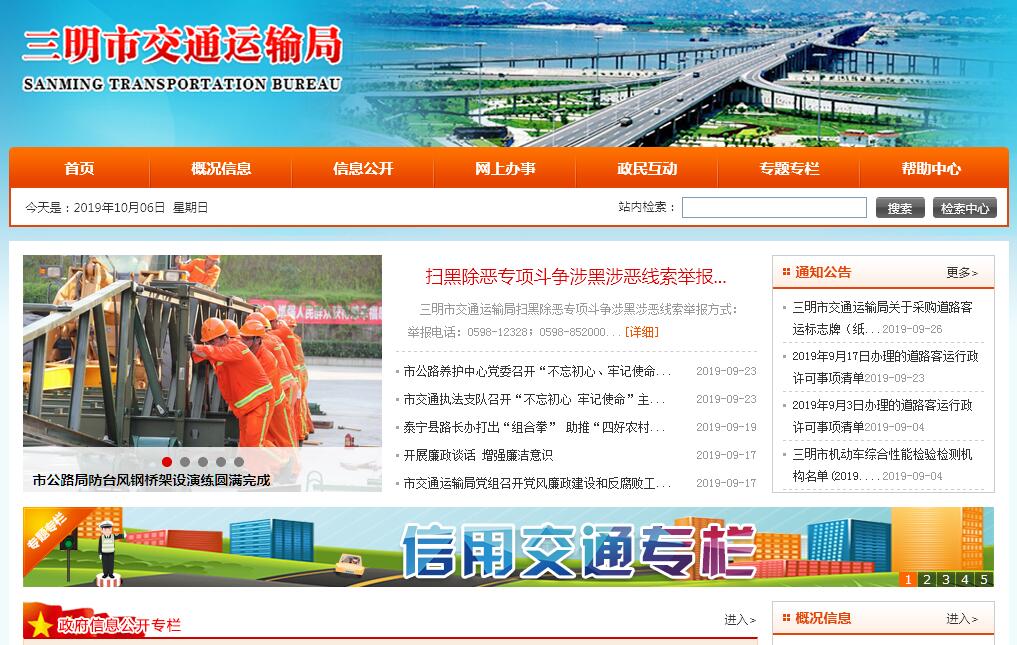 三明市交通运输局主要职责:(一)贯彻执行国家和省有关公路、水路交通、交通运输安全生产、国防动员交通战备、交通运输基础建设等法律法规、行业政策、有关规定和技术标准;拟订全市公路、水路交通行业的发展战略和规章制度并组织实施;组织全市公路、水路交通运输行业有关体制改革工作;指导、协调、监督全市交通行政执法工作。(二)拟订全市公路、水路交通运输行业发展规划、年度计划并组织实施。参与拟订交通运输总体规划;参与拟订并组织实施现代物流业发展战略和规划;指导公路、水路运输枢纽规划、建设和管理。(三)承担全市公路、水路建设市场监管责任。依法负责全市公路、水路交通基础设施建设工程的监督管理;行使全市公路、水路交通基础设施的管理和维护等行业管理职责;负责农村公路建设、养护管理工作。(四)承担全市道路、水路运输市场监管责任。组织实施道路、水路运输准入制度、技术标准和运营规范;负责城市客运、出租汽车的行业管理工作;负责全市营运车辆综合性能检测、机动车维修、运输船舶检验和驾驶员、船员培训等交通运输行业管理;负责涉外运输的有关管理工作;按规定组织国家重点物资和紧急客货运输。(五)负责公路、水路交通运输行业的安全生产监督管理和应急处置工作,承担内河水上交通安全监管责任,依法组织或参与有关事故的调查处理工作;指导、监督全市铁路道口“平改立”工程、安全防护设施监控设施改造和建设实施的有关工作;指导、监督全市公路路政管理工作。(六)会同有关部门拟订全市公路、水路交通行业投融资政策并组织实施。研究提出全市公路、水路固定资产投资规模和方向、财政性资金安排的建议;按有关规定对公路、水路项目立项、可研审批或核准提出行业审查意见;编制市级交通部门预决算并组织预算的执行,按规定负责交通专项资金的使用和监督管理。(七)指导全市公路、水路交通运输行业科技、教育工作。指导、协调公路、水路交通运输信息化建设,监测分析公路、水路交通运行情况;组织协调推广交通运输行业的技术标准和科技成果,指导交通运输行业的技术改造和车船更新,推动行业技术进步;指导全市公路、水路交通运输行业环境保护和节能减排工作。(八)负责联系、协调民航管理机构;指导、协调道路、水路运输与民航运输的衔接;参与地方民用机场规划和建设工作;参与开辟新航线、铁路的可行性研究;办理市委、市政府交办的涉及民航事务的有关事项。(九)承担市国防动员委员会交通战备的日常工作;规划全市交通战备网路布局,拟订和组织交通战备项目建设、物资的储备和调用计划,组织和管理、训练国防交通保障队伍,配合军事部门做好国防运力动员和征用工作,指导、督促公路、水路交通战备工程建设。(十)承办市委、市政府交办的其他事项。