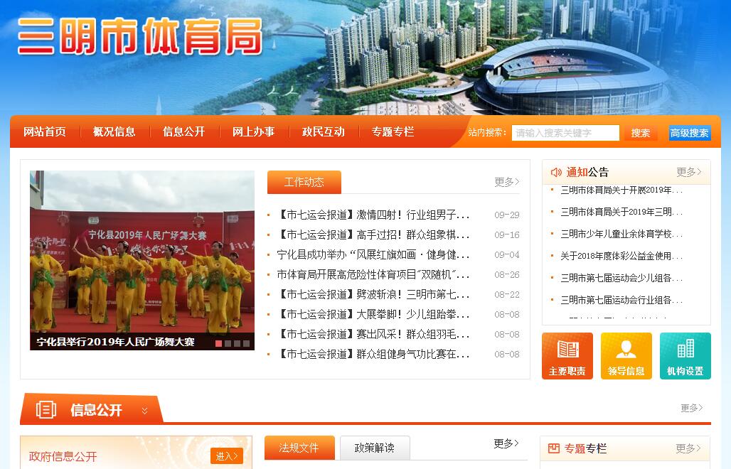 三明市体育局主要职责:(1)贯彻执行党和国家有关体育工作的方针政策和法律法规,制定全市体育工作的政策法规并监督实施;推行体育管理体制改革。(2)制定全市体育工作的发展规划、年度计划并组织实施;指导、协调各区的体育工作。(3)组织实施国务院颁布的《奥运争光计划纲要》,统筹规划全市体育运动项目的设置和布局;指导体育训练工作和体育科研工作;培养和输送高水平的体育人 才和优秀后备苗子;管理和指导全市体育竞赛工作,承办在本市举行的国际国内重大体育比赛;协助有关部门做好学校的体育工作。(4)落实国务院颁布的《全民健身计划纲要》,指导、协调全市各区、各行业、各部门和社会团体积极开展体育活动及体育宣教工作;指导、配合有关部门推行国家颁布的各项体育锻炼标准的实施;组织指导国民体质监测;培训社会体育干部和社会体育指导员;推进群众体育社会化。(5)培育和发展体育产业,归口管理体育市场,研究制定体育健身娱乐、竞赛表演、培训服务、技术信息咨询、体育俱乐部、体育经营活动的政策法规、从业条件和经营规定,考核从业人员,审核体育经营资质,指导全市体育产业发展和经营活动,对体育市场进行检查监督。(6)协同有关部门对全市公共体育设施进行规划布局,并负责标准制定和技术指导;负责市级体育事业经费计划管理,加强对体育固定资产的管理和监督。(7)指导各单项协会和体育协会开展工作,协助有关部门管理全市体育社团。(8)指导和管理全市体育外事工作,研究制定全市体育外事计划,积极开展对台对外体育交流与合作。(9)负责全市体育教练系列专业技术职务的评审和推荐工作;负责体育教练员、裁判员队伍的管理和培训,按权限负责裁判员的等级审批和运动员、社会体育指导员的等级核准工作。(10)会同有关部门做好重大体育活动的采访和报道工作,负责发布重大体育新闻,开展体育宣传工作。(11)承办市政府交办的其它事项。