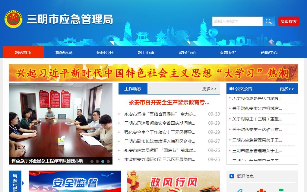 三明市应急管理局主要职责:(一)负责应急管理工作,指导各县(市、区)和市直各部门应对安全生产类、自然灾害类等突发事件和综合防灾减灾救灾工作。牵头组织编制全市应急体系建设、安全生产和综合防灾减灾规划。(二)负责安全生产综合监督管理工作,按照分级、属地原则,监督检查工矿商贸生产经营单位安全生产工作。负责非煤矿山安全生产监督管理工作。负责危险化学品安全监督管理和烟花爆竹安全生产监督管理工作。依法组织并指导实施安全生产准入制度。(三)指导应急预案体系建设,组织实施事故灾难和自然灾害分级应对制度,组织编制市级总体应急预案和安全生产类、自然灾害类专项预案,综合协调应急预案衔接工作,组织开展预案演练,推动应急避难设施建设。(四)按照要求建立统一的应急管理信息系统,负责信息传输渠道的规划和布局,指导落实监测预警和灾情报告制度,健全自然灾害信息资源获取和共享机制,依法统一发布灾情。(五)组织指导协调安全生产类、自然灾害类等突发事件应急救援,承担市级应对重大灾害指挥部工作,综合研判突发事件发展态势并提出应对建议,协助市委和市政府指定的负责同志协调组织重大灾害应急处置工作。(六)统一协调指挥各类应急专业队伍,建立应急协调联动机制,推进指挥平台对接,衔接解放军和武警部队参与应急救援工作。(七)统筹应急救援力量建设,负责抗洪抢险、地质灾害救援、生产安全事故救援等专业应急救援力量建设,协调推进消防、森林和草地火灾扑救等专业应急救援力量建设,指导地方及社会应急救援力量建设。(八)指导协调消防工作,指导各县(市、区)和市直各部门落实消防监督、火灾预防、火灾扑救等工作。(九)指导协调森林和草地火灾、水旱灾害、地质灾害等防治工作,负责自然灾害综合预警工作,指导开展自然灾害综合风险评估工作。(十)组织协调灾害救助工作,组织指导灾情核查、损失评估、救灾捐赠工作,管理、分配中央、省级下达和市级救灾款物并监督使用。(十一)指导协调、监督检查市直有关部门和各县(市、区)安全生产工作,组织开展安全生产巡查、考核工作。(十二)依法组织较大生产安全事故调查处理,指导监督一般生产安全事故查处。组织开展自然灾害类突发事件的调查评估工作。(十三)开展应急管理方面的交流与合作,参与安全生产类、自然灾害类等突发事件的市际之间救援工作。(十四)制定应急物资储备和应急救援装备规划并组织实施,会同市粮食和物资储备局等部门建立健全应急物资调拨制度,在救灾时统一调度。(十五)负责应急管理、安全生产宣传教育和培训工作,组织指导应急管理、安全生产的科学技术研究、推广应用和信息化建设工作。负责加强本系统、本领域人才队伍建设。(十六)承担市政府安全生产委员会、市减灾委员会的日常工作。(十七)完成市委和市政府交办的其他任务。
