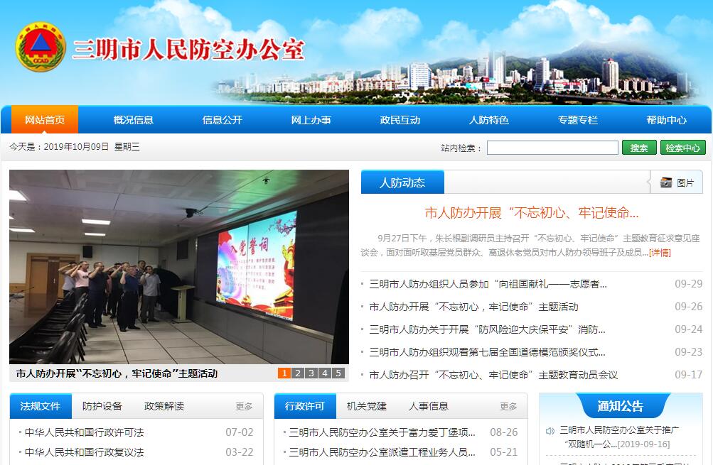 三明市人民防空办公室主要职责:(一)贯彻执行国家和省关于人防工作的方针、政策和法律、法规,宣传《中华人民共和国人民防空法》、《福建省人民防空条例》,负责组织实施和监督检查;依法管理全市人防工作和人防建设。(二)根据国民经济和社会发展计划以及国防建设需要,制定我市人防建设的发展战略与中长期规划,编制人防建设年度计划并组织实施和检查落实。(三)研究制定全市人防工程建设规划、计划,并组织实施;拟定全市人防重点镇的防护类别、防护标准,依法对城市和重要经济目标的人防建设进行监督检查;会同有关部门制定并落实人防建设与城市建设相结合规划;依据国家规定的人防工程防护标准和质量标准,负责结合民用建筑修建防空地下室设计的审核和人防工程的质量监督管理,并参加竣工验收;负责城市地下空间开发利用兼顾人民防空要求的管理和监督,并与规划、计划、建设等部门共同搞好城市地下空间的规划、开发利用和审批工作。(四)负责人防组织指挥工作,制定城市防空袭预案和战时人口疏散计划及各项保障方案的落实。组织制定人防通信警报建设,实施人防无线电管理。(五)负责指导和检查督促全市人防教育;配合市教育主管部门编制人防教学计划,指导在校学生的人防教育。(六)制定全市人防干部和专业分队人员教育培训计划并组织实施。开展人防科学技术和人防理论研究,推广应用科研成果。(七)负责市级人防建设经费和国有资产管理;代编制全市人防经费预决算并实施监督检查。(八)制订全市人防平战结合发展规划,指导全市人防平战结合工作。负责对市人防办直属单位的领导。(九)战时组织指挥人民群众进行防空袭斗争,消除空袭后果,配合城市防卫和要地防空作战,协助有关部门恢复生活秩序;平时参与抢险救灾组织指挥相应职能,为抢险救灾提供服务。(十)完成市政府、市国防动员委员会交办的其他事项。