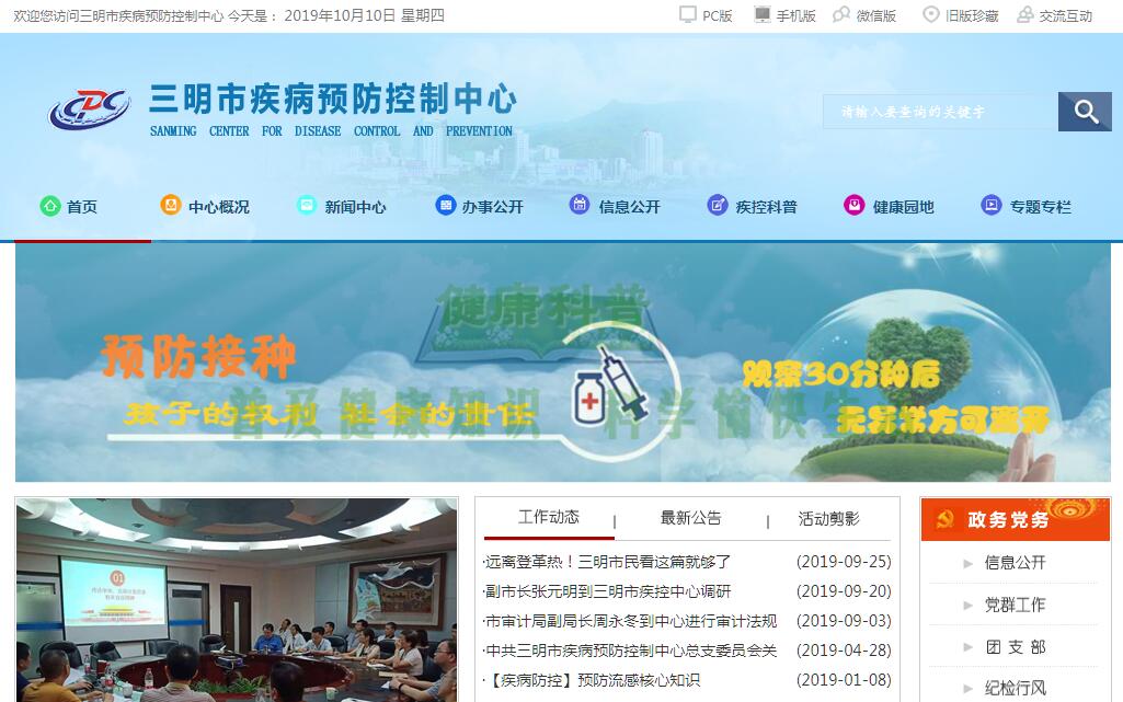 三明市疾病预防控制中心系2004年6月组建成立,规格为副处级,现有事业编制118名,设有12个内设科室。中心负责传染病、慢性病、地方病防控和免疫规划;开展病原微生物、毒物、污染物检测,做好食品卫生、职业卫生、放射卫生、环境卫生等监测评估,开展职业病诊断、健康教育与促进和预防医学研究等工作。现有在职人员102名,其中专业技术人员90人(高级职称32人、中级职称28人、初级职称30人),固定资产总值1523.66万元;中心总面积4408平方米,拥有业务办公用房1467平方米,实验室用房2417平方米。内部布局合理,仪器设施配套,建有国内先进的生物安全二级实验室、艾滋病确证实验室、PCR实验室和百级净化实验室。先后获得福建省资质认定计量认证、中国合格评定国家实验室(CNAS L2286)认可证书。中心成立后,致力于加快疾控人才培养,加强疾控体系能力建设,做好人才、技术储备。弘扬“以人为本,团结进取,求真务实,廉洁高效”中心精神,着力打造“培训一流的人才,配置一流的装备,掌握一流的技术,提供一流的服务”的服务品牌。先后被卫生部授予全国结核病防治先进单位;中华全国总工会授予“工人先锋号”称号;福建省第八届文明行业创建竞赛活动示范点;福建省卫生厅授予救灾防病先进集体;连续多年被市委、市政府授予“平安建设”先进单位,被三明市卫生计生委授予“市直医疗卫生单位综合考评先进单位”等荣誉称号。在防控和处置“非典”、“禽流感”、“甲型H1N1流感”、“H7N9流感”等重大公共卫生应急事件中,发挥了重要作用,为三明经济社会发展保驾护航。
