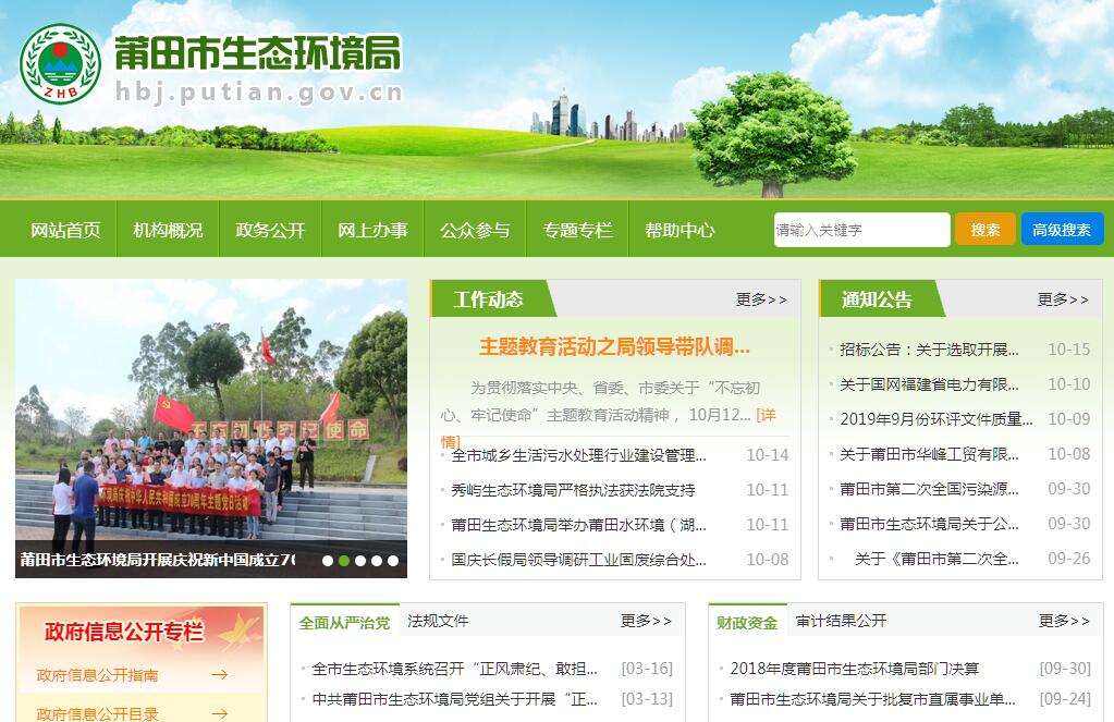 | 网站简介: 莆田市生态环境局是莆田市机构改革组建的新部门。组建市生态环境局。将市环境保护局的职责,以及市发展和改革委员会的应对气候变化和减排职责,市国土资源局的监督防止地下水污染职责,市水利局的编制水功能区划、排污口设置管理和流域水环境保护职责,市农业局的监督指导农业面源污染治理职责,市海洋与渔业局的海洋环境和渔业水域生态保护职责等整合,组建市生态环境局,作为市政府工作部门,正处级。 |