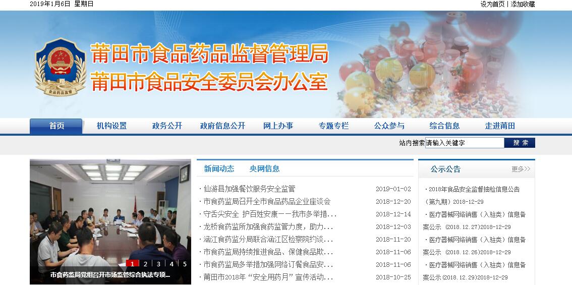 根据中共福建省委、福建省人民政府《关于福建省人民政府机构改革的实施意见》(闽委〔2009〕27号)、福建省人民政府办公厅《关于印发福建省食品药品监督管理局主要职责内设机构和人员编制规定的通知》(闽政办〔2010〕71号)、中共福建省委机构编制委员会办公室《关于调整市县食品药品监督管理局机构编制问题的批复》(闽委编办〔2011〕9号)精神,设立莆田市食品药品监督管理局,为福建省食品药品监督管理局直属机构,正处级。其主要职责:(一)贯彻执行国家、省有关药品、医疗器械、保健食品、化妆品的法律、法规、规章和政策并组织实施。(二)依法负责对保健食品生产、经营监管及保健食品广告的监测;依法负责对化妆品的监管。(三)负责中药、民族药监管工作,协助实施中药品种保护制度;参与初审新药、仿制药品、中药品种保护、新药临床试验的现场核查工作;负责医院制剂注册申请的受理、初审和现场核查。(四)配合有关部门实施国家基本药物制度,参与推荐国家基本药物目录、非处方药物目录,组织实施和监督药品分类管理制度;依法监管毒性药品、麻醉药品、精神药品、放射性药品和药品类易制毒化学品;监督实施药品(中药材)生产、医疗机构制剂质量管理规范,参与管理药品生产企业、医疗机构制剂许可证。(五)监督实施药品经营质量管理规范,实行药品经营企业资格认定制度,参与管理药品经营企业许可证;负责中药材市场监管工作;参与医疗卫生体制改革和药品集中招标采购的相关工作;负责药品违法广告的监测。(六)监督医疗器械的研制、生产、经营和使用;监督企业执行医疗器械注册产品标准;负责医疗器械生产、经营企业的日常监督管理;组织开展医疗器械不良事件监测和再评价工作;负责医疗器械违法广告的监测。(七)依法查处药品、医疗器械、保健食品的研制、生产、流通、使用方面的违法行为;依法负责化妆品有关环节违法行为的查处。(八)负责实施药品、医疗器械、保健食品、化妆品不良反应监测工作。(九)负责全市系统财务、审计等相关工作,负责国有资产管理和政府采购工作。(十)负责全市食品药品监督管理系统机构编制、人事管理等工作;实施执业药师资格制度;组织开展药学专业、医药工程专业初级技术职务任职资格的评定工作;负责离退休干部职工管理工作。(十一)承办省食品药品监督管理局和莆田市委、市政府交办的其他事项。