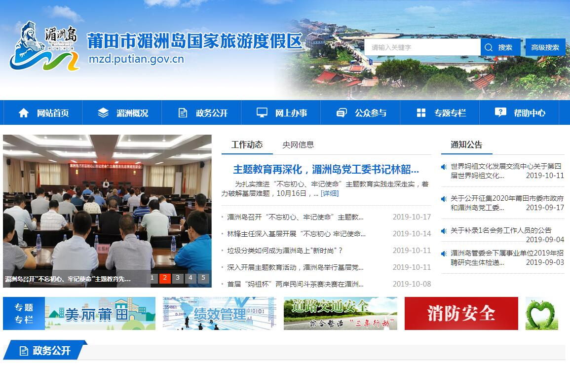 | 网站简介: 莆田市湄洲岛国家旅游度假区管理委员会(简称湄洲岛国家旅游度假区管委会、湄洲岛管委会)是莆田市湄洲岛国家旅游度假区的行政管理机关,是莆田市人民政府的派出机关,与中国共产党莆田市委员会的派出机关中共莆田市湄洲岛国家旅游度假区工作委员会(简称湄洲岛国家旅游度假区党工委、湄洲岛党工委)合署办公,行政级别为正处级。 |