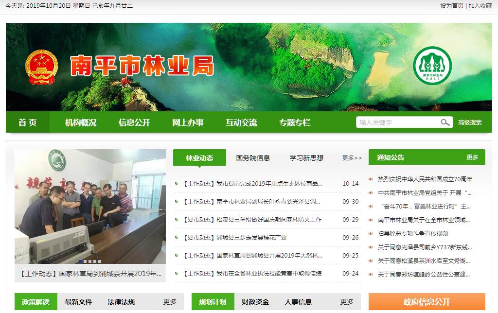 南平市林业局主要职责:(一)负责全市林业及其生态建设的监督管理。贯彻执行与宣传国家有关林业及其生态建设的方针政策和法律法规;拟定并组织实施我市林业及其生态建设的地方性实施意见与政策;根据国家和福建省林业发展相关规划,拟订全市林业发展发展相关规划;组织与协调开展全市森林资源、陆生野生动植物资源和湿地资源的调查、动态监测和评估,并统一发布相关信息;承担全市林业生态文明建设的有关工作。(二)承担组织、指导和监督全市造林绿化的责任。拟订全市植树造林规划,组织、指导各类公益林和商品林的培育;组织、指导植树造林、封山育林、防沙治沙和以植树种草等生物措施防治水土流失;组织指导全市林木种苗工作,组织、指导、监督全市义务植树、造林绿化;承担全市花卉管理工作;承担全市林业应对气候变化相关工作;承担市绿化委员会的具体工作。(三)承担全市森林资源保护发展监督管理的责任。依法承担林地、林权管理相关工作;按规定负责全市森林采伐限额和森林经营方案编制的相关工作,并监督执行;依法监督凭证采伐、运输、经营加工林木工作;依法监督管理林业生物种质资源、转基因生物安全、植物新品种保护工作。(四)承担组织、指导和监督全市湿地保护的责任。根据全国性、全省性、区域性湿地保护规划,拟订全市性湿地保护规划;组织实施建立湿地保护小区、湿地公园等保护管理工作;监督湿地合理利用。(五)负责组织、指导和监督全市陆生野生动植物资源的保护和合理开发利用。依法组织、指导陆生野生动植物的救护繁育、科学研究、科学研究、栖息地恢复发展、疫源疫病监测,监督管理全市陆生野生动植物猎捕和采集、驯养繁殖或培育、经营利用,监督管理野生动植物进出口。(六)负责全市林业系统自然保护区的监督管理。拟订并组织实施全市林业系统自然保护区发展规划,依法组织、指导林业系统自然保护区、森林公园的建设和管理。(七)承担推进林业改革,维护农民经营林业合法权益的责任。拟订集体林权制度等重大林业改革意见并组织实施;贯彻落实农村林业发展、维护农民经营林业合法权益的政策措施;指导、监督农村林地承包经营和林权流转;指导林权纠纷调处和林地承包合同纠纷仲裁;负责全市国有林场(苗圃)的管理、指导全市林业采育场、森林公园和林业基层工作机构建设和发展;承担市处理山林权纠纷工作小组的具体工作。(八)监督检查和引导各产业对森林、湿地和陆生野生动植物资源的开发利用。根据国家产业政策与导向拟订林业资源优化配置政策,指导林业产业经济布局和森林资源的合理配置及利用;拟订与组织实施林业产业发展规划,指导林业企业的改革发展与林产品市场体系建设;承担木材产销、林产加工及森林综合利用的行业管理,负责全市木材、林产品流通和林产加工企业的服务与协调,以及林业的项目引进、开发与技术改造工作;负责林业产业经济运行动态监测和林业外经工作以及涉林中介服务组织的指导与监管。(九)承担组织、指导、协调、监督林业相关保护体系的责任。承担组织、协调、指导、监督全市森林防火工作,组织编制并实施全市森林防火规划,组织编制并实施全市森林火灾应急预案,组织、协调、指导武警南平市森林支队和专业森林扑火队伍的防扑火工作;承担市森林防火指挥部的日常工作。承担林业行政执法监督工作,按权限查处全市林业重大违法案件;指导全市森林公安工作,监督管理全市森林公安队伍;组织、指导林业有害生物的防治、检疫、预测预报;监督管理全市林业安全生产;协调林业防汛抗灾工作。(十)参与拟订全市有关林业及其生态建设的财政、金融、价格、贸易等经济调节政策。组织、指导、监督林业及其生态建设的生态补偿制度的建立和实施;提出林业专项转移支付等资金的预算建议;管理监督市级林业国有资产、市级林业各项资金;按规定承担市级林业固定资产投资的有关工作;编制林业及其生态建设年度计划。(十一)组织、指导林业及其生态建设的科技工作。宣传贯彻林业标准化工作,组织实施林业省地方标准;组织、指导林产品质量监督;指导全市林业队伍建设。(十二)承办市政府交办的其他事项。