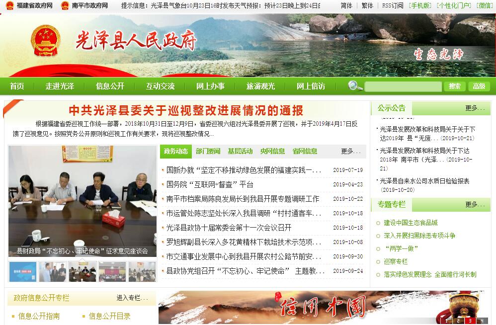 光泽县位于福建省西北部,武夷山脉北段,闽江上游富屯溪源头,与江西的黎川、资溪、贵溪、铅山及南平市的邵武、建阳、武夷山等七县(市)毗邻。鹰厦铁路和316国道由光泽入闽,邵光高速建成通车。全县总面积2240平方公里,下辖8个乡(镇)、90个村(居)委会,总人口16.43万。是省级扶贫开发重点县、省级文明县城、省级园林县城、省级城镇化试点县、省定产粮大县、一般转移支付县、重点老区县和原中央苏区县。先后被评为全国平安建设先进县、首批国家级出口食品农产品质量安全示范区、全国首批创建林业合作组织示范县”、“中国特色竹乡”、“中国厚朴之乡”、“中国生态食品名城”、全国食品工业强县、全国油茶建设重点县、全省唯一获农业部批准的内陆水产种质资源保护区。县情主要特点有:悠久的人文历史。北宋太平兴国4年(公元979年)始建县,距今已有1000多年。从新石器时代开始就有人类聚居,崇仁乡马岭商周文化遗址为我省罕见,出土的印纹陶等商周时期文物,把福建的文明史向前推进了1000多年;崇仁明清古街龚氏家祠是闽北古建筑断代的标志。历史上曾先后出过包括李巽、陈泰、何秋涛在内的34位进士。宋元时期“李氏七贤”享誉理学界;清代何秋涛所著《朔方备乘》是中国近代史第一部论述中俄关系的代表巨著;清嘉庆年间三兄弟同登进士,誉为“三凤齐飞”,至今仍有“太史府第”遗址;此外,还哺育了布衣诗人黄镇成、清代书法家陈道生、毛鹤龄等名人贤士。光荣的革命老区。光泽苏区创建于1931年,是毛泽东、周恩来、朱德等老一辈无产阶级革命家亲手创建的中央苏区县,1930-1937年曾经是中共闽赣省委机关所在地。1932年冬-1933年秋,周恩来、朱德亲自指挥中央红军占领光泽县城,并在光泽牛田组织开展第四次反“围剿”和部署第五次反“围剿”斗争前期工作。1937年10月,中共闽赣省委与国民党江西省当局在大洲村就国共合作抗日举行谈判并取得成功,光泽红军游击队改编为新四军,编入新四军三支队五团,1938年2月北上开赴皖南抗日前线。2009年被认定为原中央苏区县。优越的生态环境。入选国家重点生态功能区、国家生态保护与建设示范区,顺利通过环保部国家级生态县考核验收。有耕地面积24.6万亩,林地面积240.2万亩,其中生态公益林面积98.7万亩,竹林面积40万亩,森林覆盖率达78.2%,大气环境质量和水环境质量分别达到国家规定的一级和二级标准。县境内河流纵横,天然落差大,111条大小溪河交织成网,1985年成为全国首批实现电气化的县,被誉为“南国明珠”。丰富的旅游资源。光泽山清水秀,因山光水色而得名。境内群山连绵,山高谷深,峰峦叠嶂,千米以上的山峰有570余座,故有“一滩高一丈,光泽在天上”之说;县内第一高峰司前乡香炉峰海拔1930米,为华东第二高峰;有乌君山景区、神山景区、白云山景区、金仙崖、高家水库、商周古文化遗址、中共苏区革命根据地、九关十三隘等旅游景点;“武夷天池”被评为国家级森林公园、省级水利风景名胜区。兴业的发展平台。光泽工业园区于2006年3月经省政府批准为省级工业园区,总规划面积23.4平方公里。园区按照“一区二园”模式建设,分为和顺工业园、金岭工业园两个片区,其中:和顺工业园规划面积3.4平方公里,重点打造圣农食品加工专业园,是“全国农副产品加工示范基地”、省级新型工业化食品产业示范基地;金岭工业园规划面积20平方公里,一期建设面积4平方公里,是我县承接产业转移及城区工业“退城进园”的主要平台,为福建省山海协作示范园区。特色的产业经济。着力培育以圣农肉鸡和水、鱼、中药材“1+3”为主导,其它特色食品产业同步发展的食品产业集群,力争到2020年全县食品加工业销售收入达到200亿元。境内的圣农集团创建于1983年,是一家集饲料加工、种鸡养殖、种蛋孵化、肉鸡饲养、肉鸡加工、食品深加工、产品销售、快餐连锁为一体的联合型肉鸡生产食品加工企业,是农业产业化国家重点龙头企业、中国最大的自养自宰白羽鸡专业生产企业、全国现代化程度最高的肉鸡生产食品加工企业 、全国白羽肉鸡饲养加工行业唯一的上市公司;是肯德基长期战略合作伙伴,麦当劳唯一中国本土鸡肉供应商;圣农商标为中国驰名商标。目前,圣农集团总资产达120亿元、生产基地300多个、员工2万余人,全面完成光泽2.52亿羽肉鸡饲养加工及配套项目,产业逐步向浦城、政和等县扩张拓展。年可实现工业产值近百亿元,占全县规模以上工业总产值的82.8%,出口5342.23万美元,占全县出口总值的92.5%。力争到2020年建成5亿羽肉鸡饲养加工和配套项目及20个熟食品加工厂,着力打造千亿肉鸡产业集群、“全国最大的白羽肉鸡饲养加工基地”。纯朴、好客的光泽人民热忱欢迎海内外人士前来观光、旅游、投资兴业,共同开创美好的明天。