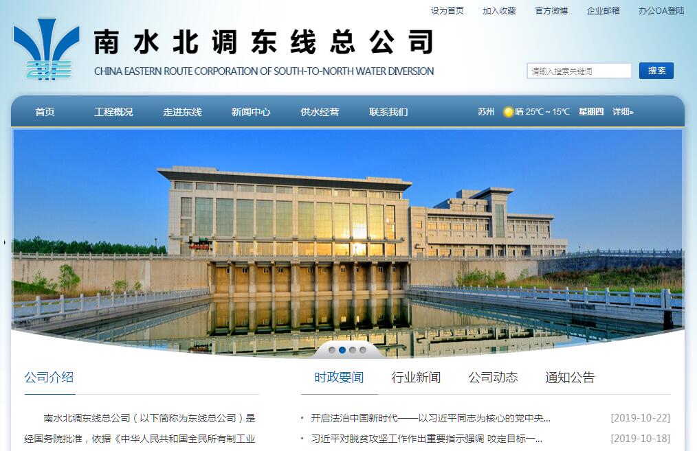 | 网站简介: 南水北调东线总公司(以下简称东线总公司)是经国务院批准,依据《中华人民共和国全民所有制工业企业法》,于2014年9月30日在工商总局登记注册(注册资金为100亿元人民币),具有独立企业法人资格,中央出资的大型国有企业。东线总公司根据管理和发展的需要按照精简、统一、效能和权责一致的原则,建立精干高效、职责明确的内部管理机构,设立7个职能部门,下设若干分公司、子公司。东线总公司负责南水北调东线主体工程运行管理,包含执行供水计划、合同、调度、运行等多项重要任务,承担工程新增国有资产的综合经营、保值增值责任;经营宗旨是按照国家批准的水量调度方案及有关规定,以供应受水区城市生活、工业和环境用水为主,兼顾农业、航运和其他用水,缓解受水区用水紧张状况,促进生态环境改善和经济社会长期平稳发展;经营范围包括主营工程建设、供水,兼营与供水有关的发电、航运、旅游等,负责项目的投融资管理。东线总公司认真履行职责,积极探索公益性调水工程的经营模式,维护、管理、经营东线主体工程,努力实现南水北调东线安全、平稳、高效运行。 |