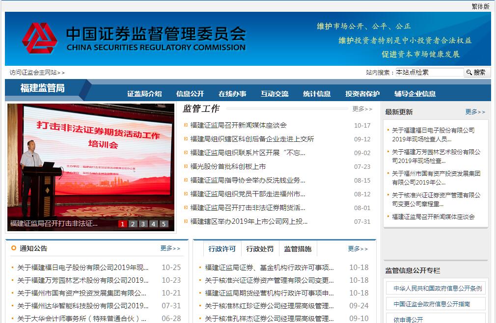 中国证券监督管理委员会福建监管局现有在职干部68人;全体干部中,取得硕士及以上学位的25人,取得注册会计师资格的20人、律师资格的9人。内设9个处(室),分别为办公室、党务工作办公室(纪检监察办公室)、机构监管处、机构检查处、公司监管处、稽查处、法制工作处、投资者保护工作处和信息调研处。办公室:负责机关综合行政事务、文秘、机要保密、财务管理、劳资工作、行政许可等工作;负责与地方各级政府和有关部门的综合协调工作。党务工作办公室(纪检监察办公室):负责党务工作、组织人事工作以及工青团妇工作;负责本局的党风廉政建设、廉政教育、党员和干部监督管理、违纪案件调查工作。机构监管处:负责辖区证券期货经营机构和投资咨询机构的日常监管工作,包括行政许可审核、风险监管(包括监测、预警、分析和防范等)、信息安全监管、重大风险处置、机构监管协调等工作;负责对辖区基金管理公司及其子公司、私募基金、基金销售机构等主体进行日常监管,包括信息披露、治理情况、内部控制、经营规范、执业活动等。机构检查处:负责对辖区证券期货经营机构、投资咨询机构、公募基金及其子公司、私募基金、基金销售机构等的现场检查工作,包括全面检查、例行抽查、问题或风险触发型的专项检查、信访核查等。公司监管处:负责辖区上市公司日常监管工作,包括负责上市公司信息披露和公司治理运作事务日常监管;协调处置辖区上市公司风险;负责辖区防控内幕交易工作等;负责辖区非上市公众公司、债券发行人、资产支持证券发行人等的监管工作;负责对各公司类监管对象的现场检查工作等;负责对会计师事务所、资产评估机构等中介机构及其从业人员在辖区从事证券期货相关业务活动进行监管等;负责对上市公司保荐机构持续督导工作进行监管。稽查处:负责自立案件及中国证监会交办案件的立案、报备、调查、复核、送达、执行等工作;办理中国证监会系统内外相关单位案件协查工作;牵头承担辖区证券期货行业反洗钱相关协调工作。负责与辖区公安、检察、法院等机关的协调工作;负责组织协调辖区打击非法证券期货基金活动,协助司法机关做好非法证券期货基金活动的性质认定工作等。法制工作处:负责自办案件的审理、听证并依法作出行政处罚工作;负责监管措施等的法律审核工作;负责辖区法制宣传及诚信建设等相关工作;负责对辖区律师事务所从事证券法律业务进行监管;负责涉及本局的行政诉讼和行政复议的有关工作等。投资者保护工作处:负责牵头组织、协调辖区投资者保护和教育工作,归口管理和协调处理辖区证券期货信访投诉举报事项等;负责区域性股权交易的协调监管工作等;负责股权众筹等新业务的监管。信访举报热线:0591-87828160。信访接待地址:福州市铜盘路福州软件园B区10号楼A栋,邮编:350003。信息调研处:负责辖区资本市场的信息收集、统计、分析与发布、报送等工作;负责本辖区市场发展研究等工作,组织协调开展各类调研工作;负责本局信息宣传与政务信息公开管理工作;负责中央监管信息平台的相关维护协调工作;负责本局各类网站的建设和维护;负责本局计算机信息系统管理工作;负责推进辖区企业改制上市、挂牌及开展保荐机构辅导监管工作。
