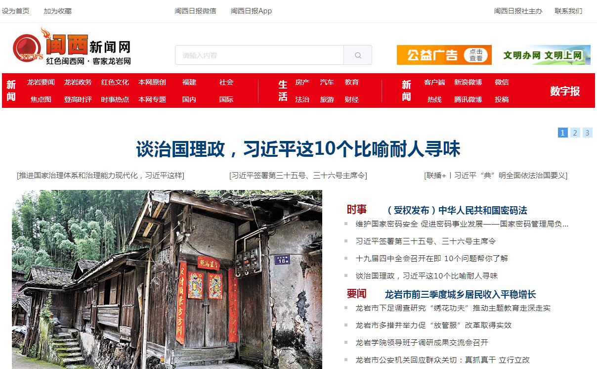闽西新闻网是闽西日报社主办的闽西综合性网站,设置有政务、新闻、文化、服务、旅游、投资、企业、娱乐、健康、军事、法制、日报电子版、网络社区等频道。网址为 www.mxrb.cn 。闽西新闻网立足闽西,以新闻为主干,以服务为延伸。充分发挥闽西在对台对外宣传等方面的优势,建成展示福建省海峡西岸经济区建设风貌的窗口,建成闽西的网上新闻发布中心、网上公众信息服务中心,搭建一个联结海内外客家乡情的平台、对台宣传的阵地、宣传闽西的新载体。闽西新闻网前身是《闽西日报》的电子版。闽西新闻网从仅仅充当《闽西日报》的电子版起步,逐步朝着面向闽西,辐射闽西周边地区的地方综合性网站方向发展。闽西日报社把建设闽西新闻网置于培育新兴媒体的高度,从编辑部机构设置,技术、编辑人员配备和资金支持等方面,着力发展壮大闽西新闻网。 2006 年 12 月 28 日 ,网站全新改版,依托《闽西日报》权威媒体,打造强势网络,实现从 “ 电子版 ” 模式向 “ 综合信息网 ” 模式的彻底转变。 2009 年 3 月 11 日 ,闽西新闻网改版试运行,以全新面貌亮相互联网。这是闽西新闻网开通两年多来进行的首次大规模改版。新版推出后,将使闽西新闻网向综合性、多功能新闻网站迈出新的步伐。闽西新闻网将致力于宣传、贯彻党和政府的路线、方针、政策和法律法规,发布闽西及国内外的大事要事,提供各种民众所需信息和服务,扩大对外宣传,介绍闽西政治、经济、文化及民俗、民风特色,丰富人民群众的文化生活,为闽西经济社会全面发展擂鼓助威。努力建设成一个依托《闽西日报》、《生活专刊》新闻资源,对本地新闻进行网上报道的新闻平台;全方位宣传闽西的自然文化资源、独特人文景观的宣传平台;整合信息资源,建立政府信息资源库,链接市委市政府党务政务信息、电子商务信息、招商引资等各种信息的信息发布平台;关注老百姓生活的点点滴滴、为老百姓的衣、食、住、行提供参考和指导的服务平台;注重社区功能开发,运用网络的互动、开放等优势,开辟网上社区,结合各行各业,建设社区综合信息网站,成为广大网友交流平台。同时,充分利用报社的信息优势,整合商品资源,同各企业做有效链接,成为沟通客商与企业的商务服务平台。