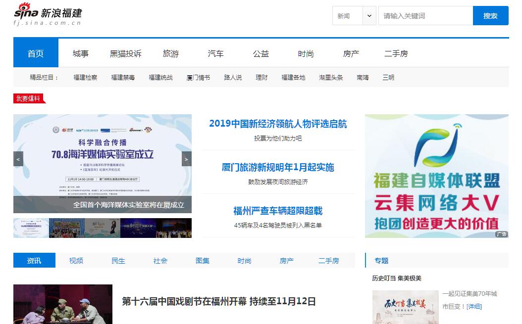 | 网站简介: 新浪福建为福建省内福州、厦门、泉州、漳州、龙岩、宁德、南平等地市用户提供全面及时权威的新闻资讯,生活资讯,内容覆盖福建本地新闻事件、生活信息、实用信息等,设有新闻、生活、论坛、汽车、旅游、健康、博客、视频、微博等多个频道,以WEB 2.0服务与产品为特色,通过地方门户切入,实现满足本地网民基于生活、享乐生活的桥梁角色。 |