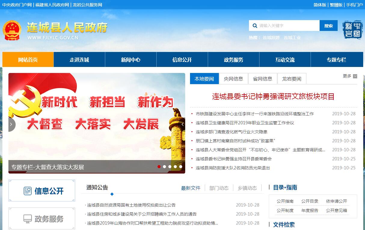 连城县简称“莲”,南宋绍兴三年(公元1133年)置县,地处福建省龙岩市北部,总面积2579平方公里,辖10镇7乡247个村(社区),总人口34.6万,先后获得“中国红心地瓜干之乡”“中国连城白鸭之乡”“中国客家硒都”“中国优秀旅游县”“中国文化旅游大县”“中国客家美食名城”“中国温泉之城”“全国武术之乡”“全国双拥模范县”“中国客家民俗文化之乡”和“全国首批创建生态文明典范城市”等荣誉。连城是著名的革命老区。第二次国内革命战争时期,属中央苏区县之一,也是红军长征前东线最后一役──松毛岭战役发生地。是红军的故乡,当年全县97%的乡村建立了红色政权,1万多名连城子弟踊跃参加红军和游击队。连城新泉镇在党史上具有重要历史地位,是毛泽东思想建党建军理论奠基地、古田会议决议(草案)起草地、红四军首次政治军事整训地(新泉整训)、红四军第四纵队诞生地、我党历史上第一所培养妇女干部的学校——中央苏区第一所工农妇女学校创办地、三大纪律八项注意完善地。连城区位优势明显,交通便利。位于东南沿海连接内陆的闽粤赣边地区,境内拥有闽西地区唯一的民航机场—龙岩冠豸山机场,已开通至北京、上海、南京、武汉、桂林、昆明、成都等地航班。赣(州)龙(岩)铁路开通动车路线,并已开工建设浦建龙梅动车线路。同时,还拥有龙(岩)长(汀)、永(安)武(平)两条高速公路。连城农业、矿产资源丰富。拥有连城白鸭、连城兰花、文亨红衣花生、宣和雪薯、连城红心地瓜干、冠豸山铁皮石斛等6个国家地理标志产品和连城红心地瓜干、连城兰花、茗匠竹艺等3个“中国驰名商标”。连城红心地瓜干占有全国80%的市场份额;“新古田会议”期间,连城白鸭受习近平总书记点赞;连城是全国(全世界)最大的国兰基地。境内煤、锰、铜钼、铅锌、膨润土、稀土等矿产资源储量大、品位高。连城生态优美,是著名的旅游胜地。是我国南方36个重点林区县之一,是福建闽江、九龙江、汀江主要发源地,全县森林覆盖率80.9%,居福建省第二、龙岩市第一。拥有冠豸山、培田古村落、天一温泉度假村3个国家4A级旅游景区和世界A级自然保护区──梅花山。冠豸山被誉为“南豸北夷(武夷山)、丹霞双绝”,有“放大的盆景、缩小的仙境”“阳刚天下第一、阴柔举世无双”之称;培田古村落入选“中国十大最美村镇”“中国最美休闲乡村”,其“九厅十八井”的建筑类型是客家民居的三种典型代表之一,有“民间故宫”之美誉,原中央政治局常委、全国政协主席贾庆林称赞它是“最有文化的古村落”;梅花山有“北回归荒漠带上的绿色翡翠”及“动植物资源的天然基因库”之称;天一温泉度假村是拥有五星级酒店、五星级温泉的4A级景区,获得中国温泉业界最高奖项──金汤奖。连城文化底蕴深厚,人文荟萃。是客家人聚居地之一,境内共有2个国家历史文化名村、3处国家重点文物保护单位、7项国家非物质文化遗产、13项省级非物质文化遗产和2项吉尼斯世界纪录,号称古中原文化的“活化石”。连城名人辈出,涌现出明代都察御史马驯、清代著名学者邹圣脉、清代两江总督杨簧,近代书法家罗丹以及革命先辈张南生、江一真、项南等一大批历史杰出人物。