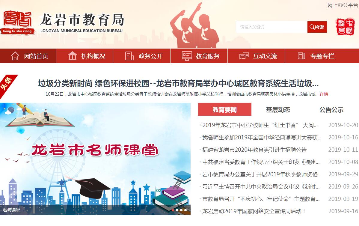 龙岩市教育局主要职责:(一)贯彻执行国家有关教育工作的法律法规和政策,并组织实施。(二)贯彻执行中央、省委、市委关于加强党的建设和思想政治工作的方针、政策,对全市各级各类学校贯彻落实情况进行检查、督促;在市委主管部门的统一指导下,负责所辖各级各类学校党的组织建设、思想政治教育、统战和党风廉政建设工作。(三)受市委委托,会同组织部门负责所辖各级各类学校领导班子建设和干部宏观管理,后备干部队伍建设,强化干部工作的监督检查,指导、协调所辖各级各类学校处级离退休干部管理工作和科级以上(含科级)干部培训工作,负责管理局(委)机关、市属学校(单位)科级干部,管理所辖各级各类学校处级及以下干部档案以及局(委)机关正科级及以下干部档案。(四)统筹全市教育事业发展,研究制订全市教育事业发展规划和年度计划并组织实施;统筹协调各级各类教育,指导教育体制、办学体制改革;会同有关部门指导、实施各级各类学校的设置工作;负责教育基本信息的统计、分析和发布;统筹指导全市民办教育工作。(五)负责实施全市九年义务教育,推进义务教育均衡发展,促进教育公平;落实国家教育惠民政策,负责学生资助工作;综合管理全市的普通高中教育、学前教育、特殊教育、少数民族教育和扫除文盲等工作;指导基础教育课程改革和教学管理,推动素质教育的全面实施。(六)指导协调职业教育和成人教育的改革与发展,指导职业院校专业建设、教育教学管理和基础能力建设;指导和推进全市社区教育工作;统筹协调全市终身教育工作,承担市终身教育促进委员会的日常工作。(七)指导高等学校开展教育教学改革、学科专业建设和教育教学管理工作。(八)指导、协调各县(市、区)、各部门有关教育的督导与评估工作,负责全市教育督导与评估工作,开展对县级政府教育工作督导评估,加强对各级各类学校和其他教育机构教育教学工作检查和评估。组织开展全市基础教育发展水平监测。(九)负责提出每年局(委)机关、市直学校(单位)教育经费计划的建议;负责指导和执行全市教育系统经费的筹措、管理;按规定管理国内外教育援助、教育贷款和教育捐赠;按规定对市直学校(单位)教育经费实施内部审计监督。(十)主管全市教师工作,依法管理、指导全市教师资格认定、职务评聘、考核培训、表彰奖励工作;指导全市教育系统人才队伍的建设;推进教育人事制度改革。(十一)指导基础教育和中职学校年度招生工作,制定高中阶段学校招生考试政策;统筹管理全市各类学校考试。(十二)指导各级各类学校学籍学历管理,负责全市高中阶段学校学籍学历管理;指导学生资助工作;参与拟订毕业生就业政策,负责师范类毕业生的就业指导和服务工作及非师范类毕业生离校前的就业指导和服务工作。(十三)指导各级各类学校的德育、体育卫生、文化艺术、社会实践、国防教育、环保教育、安全稳定等工作;指导全市学校条件装备、信息化建设、校办产业、基本建设和后勤管理工作。负责未成年人保护工作。(十四)统筹管理全市教育系统对外交流和合作;协调、办理教育系统因公出国人员和海外来我市学校工作人员的有关工作,开展同港、澳、台等地区的教育交流。(十五)负责全市语言文字规范化、标准化的宣传和推广工作。(十六)承办市委、市政府交办的其它事项。