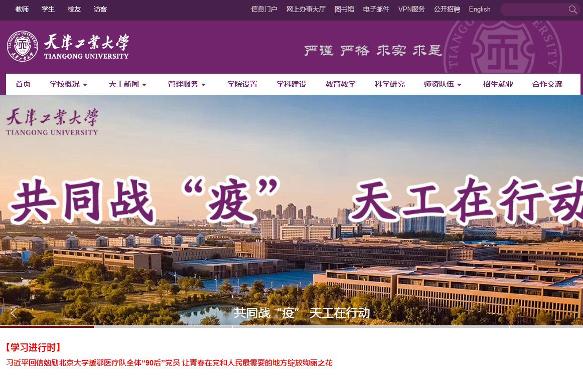 天津工业大学是教育部与天津市共建、天津市重点建设的全日制普通高等学校。学校办学历史悠久,最早的学科始建于1912年,1958年开始独立办学,原名河北纺织工学院,1968年更名为天津纺织工学院,2000年更名为天津工业大学,2017年入选国家“双一流”世界一流学科建设高校,是我国最早开展纺织高等教育的学府之一,现已发展成为一所以工为主,工、理、文、管、经、法、艺协调发展的多科性工业大学。天津工业大学总占地面积约195万平方米,总建筑面积86万平方米。学校下设16个学院,现有全日制在校生28000余名,其中本科生24000余名,研究生3000余名,在校留学生1700余人次。天津工业大学现有61个本科专业,涵盖工学、理学、文学、管理学、经济学、法学、艺术学等学科,其中包括6个国家级特色专业、15个天津市品牌专业、6个天津市战略性新兴产业相关专业、天津市优势特色专业8个、应用型专业12个,获得工程教育专业认证专业1个。学校拥有1个国家重点学科、1个学科入选国家“双一流”建设学科、5个学科入选天津市“双一流”建设学科、5个学科入选天津市“双一流”建设特色学科(群)、12个天津市重点学科;拥有3个博士后流动站、3个一级学科博士点,25个一级学科硕士点和7个专业硕士学位授权点;纺织科学与工程学科在全国第四轮学科评估中获得A+,数学、化学、材料科学和工程学四个学科进入ESI全球前1%。学校拥有天津市属高校中第一个国家重点实验室——分离膜与膜过程省部共建国家重点实验室,建有国家级国际联合研究中心1个、国家地方联合工程研究中心1个、教育部重点实验室2个、天津市重点实验室6个,教育部工程研究中心2个和天津市工程中心7个、天津市技术推广中心1 个,天津市人文社会科学重点研究基地2个。建有天津市膜分离技术协同创新中心、天津市科技成果转化中心。建有国家级实验教学示范中心及虚拟仿真实验教学示范中心4个、国家级工程实践教育中心9个,市级实验教学示范中心8个、市级虚拟仿真实践教学中心3个、市级实验教学示范中心建设单位7个,拥有国家大学生文化素质教育基地1个、国家级大学生校外实践教育基地2个、全国示范性工程专业学位研究生联合培养基地2个,天津市大学生科技创业实习基地1个。天津工业大学始终坚持中国特色社会主义办学方向,落实立德树人根本任务,坚持以德为先、能力为重、全面发展和个性发展相结合的原则,着力培养胸怀经纬、求真务实、品高学优、工勤业精,具有创新精神的应用型高级专门人才,努力追求本科教学质量国内同类院校一流水平。学校积极推行“分层次、个性化、重基础、强能力、开放式”的人才培养模式,大力实施特色人才培养计划,多个专业入选教育部“卓越工程师教育培养计划”,并与数十家知名企业开展“第二校园”合作。学校关心支持学生成长成才,设有十多项奖助学金。近年来,学生每年在学科竞赛中获得省部级以上奖励均超过800项,培养出了以全国道德模范徐伟为代表的一批优秀大学生和先进集体,是教育部“深化创新创业教育改革示范高校”。毕业生就业率连年位居天津市属高校前列。近年先后获得“全国毕业生就业典型经验高校”、“全国高等学校创业教育研究与实践先进单位”、“天津市普通高校创新创业教育与就业工作示范校”等称号。学校“创客空间”先后被认定为首批天津市众创空间和首批国家级众创空间,并被纳入国家级科技企业孵化器的管理服务体系。天津工业大学高度重视加强师资队伍建设。现有专任教师1600余名,其中具有高级职称人员800余名。拥有中国工程院院士1名、教育部“长江学者奖励计划”特聘(讲座)教授4名、“国家杰出青年科学基金”获得者2名、全国杰出专业技术人才2名、“百千万人才工程”国家级人选8名,拥有“何梁何利基金科学技术奖”和“光华工程科技奖”获得者、国务院学位委员会学科评议组专家(召集人)、国家批准有突出贡献的中青年专家、科技部“科技创新推进计划”入选者、享受国务院政府特殊津贴专家以及天津市“千人计划”入选者、天津市特聘(讲座)教授、教育部新世纪优秀人才等高层次人才200余名,特聘两院院士和国外兼职教授50余名。入选国家级“创新人才培养示范基地”。天津工业大学鼓励自主创新,彰显现代纺织和产学研结合的特色,具有较强的科研实力和科技成果转化能力。近年来,学校承担了“973”计划、“863”计划、国家重点研发计划项目(课题)、国家社会科学基金项目、国家自然科学基金项目以及有关省部级各类科研课题近千项,并取得多项标志性和突破性成果,累计获得国家科技奖13项, 2007-2015年连续九年蝉联11项,获授权专利1000余项。形成了“先进纺织复合材料”、“膜分离技术”、“特种纤维与产业用纺织品”、“纤维界面处理技术”、“工程电磁场与磁技术”、“电机系统及其智能控制”、“机电设备集成制造”、“半导体照明与材料”等八大特色科研优势,构建了以能源材料、数字化纺织、功能服装、纳米材料与技术等为重点的支撑领域,确立了物联网技术、循环经济、纺织经济、工业工程与管理、公共危机管理、应用法学等新兴发展领域。多项科研成果打破国际垄断、应用于国家战略性新兴产业和国防高科技产业。天津工业大学是“中国政