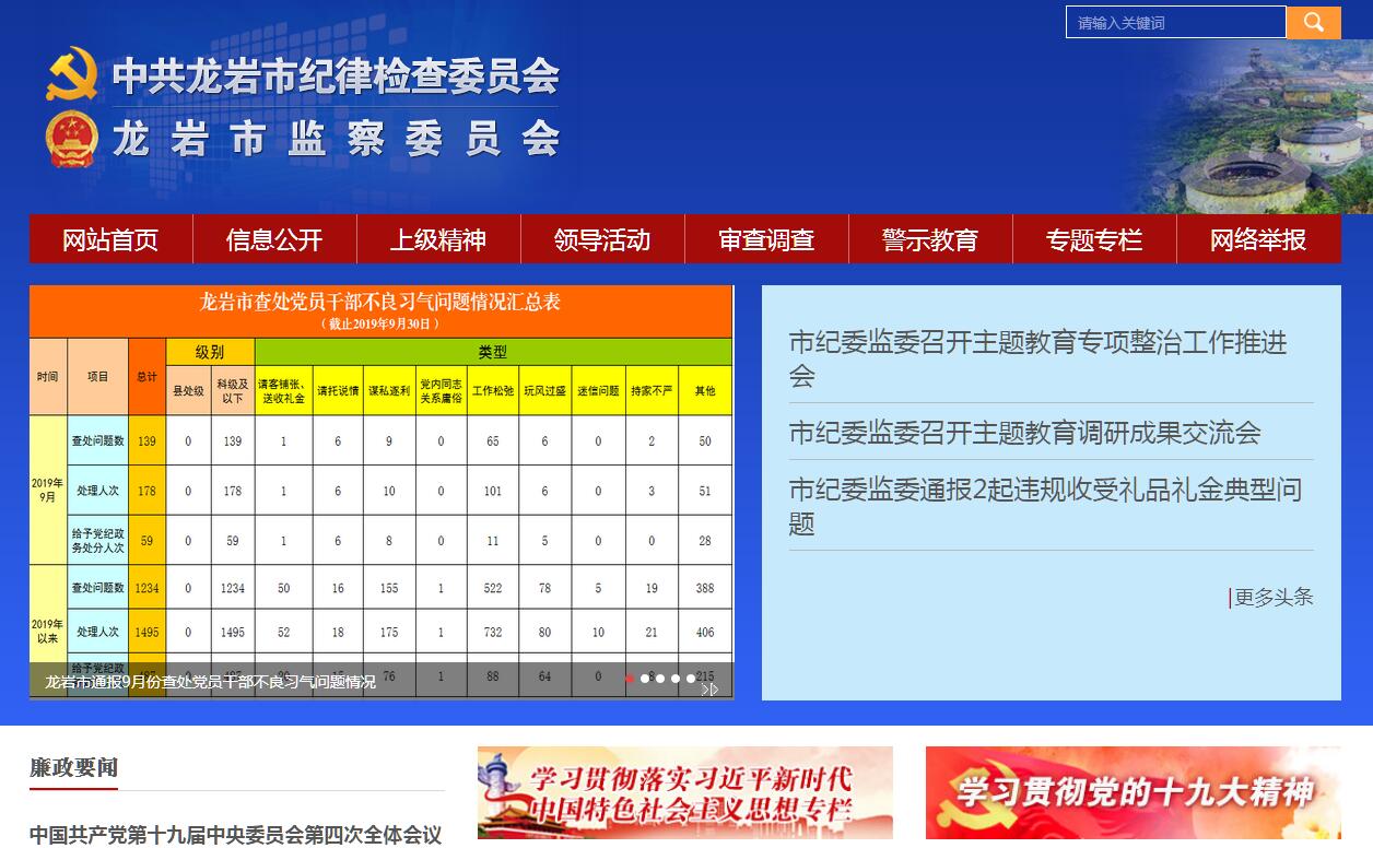 龙岩市纪委、监察局按照《党章》和《行政监察法》履行职责。主要职责是:1、主管全市党的纪律检查工作。负责贯彻落实党中央、中央纪委、省纪委和市委关于加强党风廉政建设的决定,维护党的章程和其它党内法规,检查党的路线、方针、政策和决议的执行情况。2、主管全市行政监察工作。负责贯彻落实党中央、国务院,省委、省政府,市委、市政府和监察部、省监察厅有关行政监察工作的决定,监督检查市政府各部门及其工作人员和各县(市、区)人民政府及其负责人执行国家政策和法律法规、国民经济和社会发展计划及市政府颁发的决议和命令的情况。3、负责检查并处理市直机关各部门、各县(市、区)党的组织和党委管理的党员领导干部违反党的章程及其它党内法规的案件,按有关条例或规定,决定或取消对这些案件中的党员的处分;受理党员的检举控告和党员、党组织的申诉,必要时直接查处下级党的纪律检查机关管辖范围内的比较重要或复杂的案件。4、负责调查处理市政府各部门及其工作人员、各县(市、区)人民政府及其负责人违反国家政策、法律法规以及违反政纪的行为,并根据责任人所犯错误的情节轻重,作出撤职及撤职以下的行政处分(对涉及选举产生的领导干部按法定程序办理);受理监督对象不服政纪处分的申诉,受理个人或单位对监察对象违纪行为的检举、控告。5、负责作出关于维护党纪的决定,制定党风党纪教育规划,会同有关部门做好党的纪检工作方针、政策的宣传工作和对党员的遵守纪律的教育工作,表彰抓党风党纪成绩突出的先进单位和个人。6、会同有关部门做好行政监察工作的方针、政策和法律法规的宣传工作。教育国家机关工作人员遵纪守法、为政清廉,对忠于职守、清正廉洁、政绩突出的工作人员,提出表彰奖励的建议。7、调查全市党组织和党员遵纪守法情况,研究党风、党纪中的有关问题,拟定相应党纪条规和政策规定。8、调查监察对象遵纪守法情况,研究政风政纪中出现的带普遍性、倾向性问题,起草行政监察工作的地方性法规和政策规定,并负责监督实施;了解市政府各部门和县(市、区)人民政府制定有关政策、法规情况,对其违反国家法律和有损国家利益的条款,提出修改、补充的建议;变更或撤销下级行政监察机关不适应的决定和规定。9、会同市直各部门、单位以及各县(市、区)党委、政府做好纪检、监察干部的管理工作。审核各县(市、区)、市直有关部门、企事业单位纪委(纪检组)领导班子和监察局(室)领导干部人选;负责市纪委、市监察局派驻各部门除市管干部以外的纪检组、监察室的领导干部职务的任免;负责纪检、监察系统干部的培训工作。10、承办市委、市政府,省纪委授权和交办的其他事项。