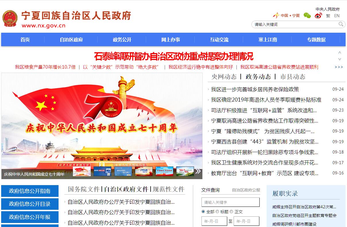宁夏回族自治区人民政府门户网站由自治区政府办公厅电子政务办公室负责建设维护,自治区政府所属各部门和市县政府在自治区政府网上发布政务信息或链接政府服务事项,请按照《中华人民共和国政府信息公开条例》和自治区政府办公厅有关文件要求执行。浏览者如发现内容有误,请及时与我们联系。宁夏回族自治区,简称“宁”,中华人民共和国省级行政区。自治区首府银川,位于中国西北内陆地区,宁夏界于北纬35°14'-39°14',东经104°17'-109°39'之间,东邻陕西,西、北接内蒙古,南连甘肃,宁夏回族自治区总面积6.64万平方千米。宁夏地形从西南向东北逐渐倾斜,丘陵沟壑林立,地形分为三大板块:北部引黄灌区、中部干旱带、南部山区。宁夏地处黄河水系,地势南高北低,呈阶梯状下降,全区属温带大陆性干旱、半干旱气候。截至2017年底,宁夏回族自治区下辖5个地级市,11个县,2个县级市,9个市辖区。截至2017年末,宁夏回族自治区常住人口681.79万人,实现地区生产总值(GDP)3453.93亿元,第一产业261.07亿元,第二产业1580.53亿元,第三产业1612.33亿元,人均地区生产总值实现50917元。