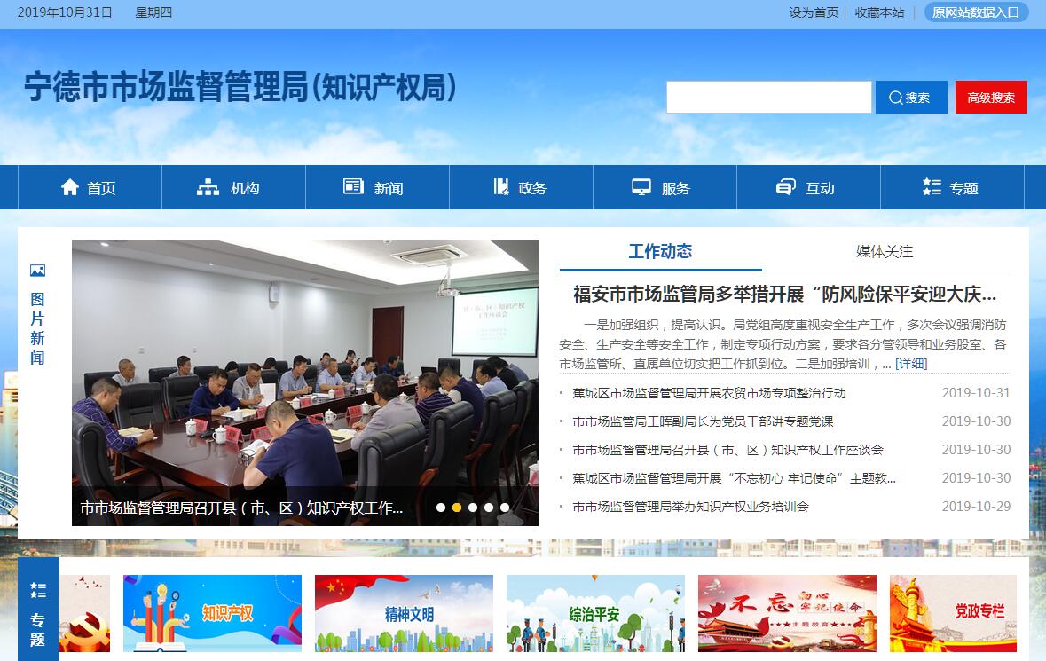 宁德市市场监督管理局主要职责:(一)负责市场综合监督管理和知识产权管理。拟定有关政策、标准,组织实施质量强市战略、品牌战略、食品安全战略、标准化战略和知识产权战略,拟定并组织实施有关规划,规范和维护市场秩序,营造诚实守信、公开竞争的市场环境。(二)负责市场主体统一登记注册。负责各类企业、农民专业合作社和从事经营活动的单位、个人工商户以及国家市场监督管理总局授权范围内的外商投资企业、外国(地区)企业常驻代表机构等市场主体的登记注册工作。建立市场主体信息公示和共享机制,依法公示和共享有关信息,加强信用监管,推动市场主体信用体系建设。(三)负责组织和指导市场监督管理,以及有关知识产权综合执法工作。指导全市市场监督管理综合执法队伍建设,推动实行统一的市场监督管理。组织查处重大违法案件。规范市场监督管理和有关知识产权行政执法行为。(四)依委托福州反垄断执法调查具体工作。统筹推进竞争政策实施,组织实施公开竞争审查制度。依委托负责垄断协议、滥用市场支配地位和滥用行政权力排除、限制竞争等反垄断执法调查工作。依法对全市经营者集中行为进行监督,并配合开展调查。指导我市企业在国外的反垄断应诉工作。(五)负责监督管理市场秩序。依法监督管理市场交易、网络商品交易及有关服务的行为。组织指导查处价格收费违法违规、不正当竞争、违法直销、传销、侵犯商标专利知识产权和制售假冒伪劣行为。指导广告业发展,监督管理广告活动。负责全市市场监管相关安全生产工作。依法查处无照生产经营和相关无证生产经营行为。承担市打击侵犯知识产权和制售假冒伪劣商品工作领导小组办公室日常工作。(六)负责消费者权益保护工作。负责指导消费者咨询、投诉、举报的受理和处理,负责市场监督管理投诉举报网络体系建设与管理,保护经营者、消费者合法权益。指导市消费者权益保护委员会开展消费维权工作,承担同城快送行业监管职责。(七)负责宏观质量管理。组织实施质量发展规划。统筹全市质量基础设施的协同服务与应用工作,会同有关部门组织实施较大工程设备质量监理制度,组织重大质量事故调查,统一实施缺陷产品召回制度,监督管理产品防伪工作。负责宁德市质量奖日常管理工作。(八)负责产品质量安全监督管理。管理产品质量安全风险监控、监督抽查工作。组织实施质量分级制度、质量安全追溯制度。负责工业产品生产许可管理。承担棉花等纤维质量监督工作。(九)负责特种设备安全监督管理。综合管理特种设备安全监察、监督、风险防范工作,监督检查高耗能特种设备节能标准和锅炉环境保护标准的执行情况。依法承担特种设备安全事故调查工作。(十)负责食品安全监督管理综合协调。统筹指导全市食品安全工作。负责拟订食品安全工作规划、食品安全监管年度计划并组织实施。负责食品安全应急体系建设,组织指导较大食品安全事件应急处置和调查处理工作。建立食品安全信息统一公布制度,依法公布较大食品安全信息。承担市食品安全委员会办公室日常工作。(十一)负责食品安全监督管理。建立覆盖食品生产、流通、消费全过程的监督检查制度和隐患排查治理机制并组织实施,防范区域性、系统性食品安全风险。推动建立食品生产经营者落实主体责任的机制,健全食品安全追溯体系。组织开展食品安全监督抽检、风险监测、核查处置和风险预警、风险交流工作。(十二)负责药品(含中药、民族药,下同)、医疗器械、化妆品安全监督管理。组织监督实施国家药品、医疗器械、化妆品标准和分类管理制度,负责药品零售、医疗器械经营的许可、检查和处罚,以及化妆品经营和药品、医疗器械使用环节质量的监督管理;开展药品不良反应和医疗器械不良事件监测和处置工作;参与组织实施执业药师资格准入制度;参与组织实施国家基本药物目录和药品分类管理制度。(十三)负责统一管理计量工作。贯彻执行国家计量制度,推行法定计量单位,依职责管理计量器具及量值传递、溯源和比对工作。规范、监督商品量和市场计量行为。(十四)负责统一管理标准化工作。组织拟定和修订市级地方标准,依法承担市级地方标准的统一立项、编号、发布等工作。依法协调指导团体标准、企业标准制定工作。组织制定实施标准化激励政策,规范标准化活动。承担我市法人和其他组织统一社会信用代码相关工作,管理商品条码工作。(十五)负责统一管理认证认可与检验检测工作。组织落实认证认可与检验检测监督管理的计划措施,指导协调认证认可与检验检测行业发展。依法监督管理认证认可与检验检测活动。(十六)负责保护知识产权。拟订实施严格保护商标、专利、原产地地理标志、集成电路布图设计等知识产权制度措施。研究鼓励新领域、新业态、新模式创新的知识产权保护、管理和服务政策。研究提出知识产权保护体系建设方案并组织实施,推动建设知识产权保护体系。负责组织指导商标、专利执法工作,组织指导知识产权争议处理、维权援助和纠纷调处等工作。组织指导知识产权预警和涉外保护工作。(十七)负责促进知识产权运用。拟订实施知识产权激励奖励制度、知识产权转化运用和交易运营政策措施。指导落实商标、专