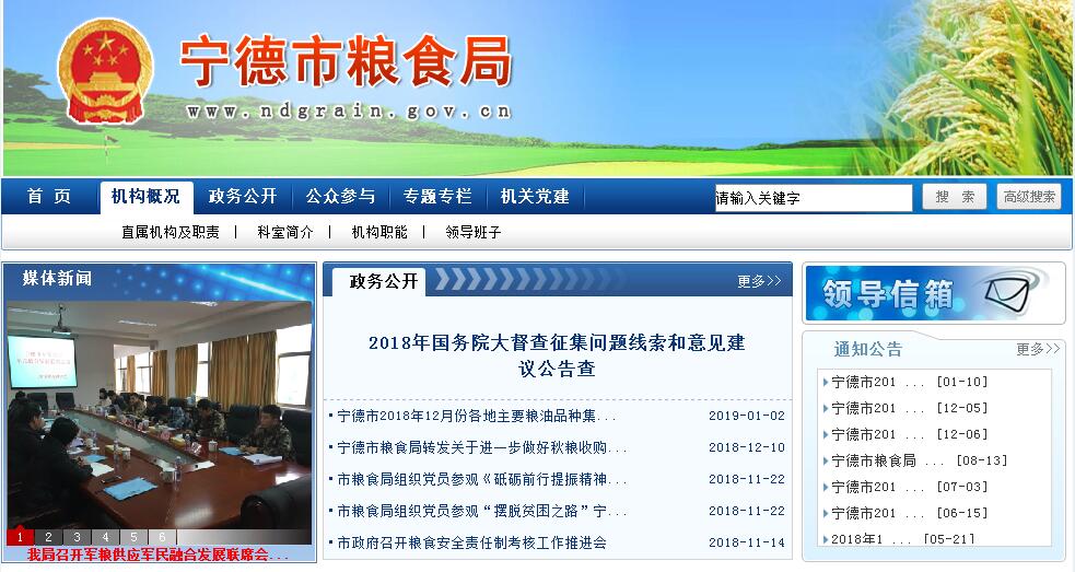 宁德市粮食局主要职责:一、研究提出我市粮食宏观调控、总量平衡以及粮食流通中长期规划,负责全市粮食流通宏观调控的具体工作,拟订粮食流通体制改革方案并组织实施,推进国有粮食企业改革,推动我市现代粮食流通产业的发展。二、承担粮食监测预警和应急责任,完善粮食应急预案并组织实施。指导协调最低收购价粮食等政策性粮食购销和粮食产销合作。依法对粮食经营者从事粮食收购、储存、运输活动和政策性用粮购销活动,以及执行国家粮食流通统计制度情况进行监督检查,负责对粮食收购、储存、运输环节的粮食质量安全和原粮卫生进行监督管理。负责全市粮食流通的行业管理,拟订并组织实施全市粮食市场体系、粮食流通、仓储设施的建设规划,负责粮食收购市场的准入许可,负责粮食仓储管理和安全储存工作,指导粮食行业安全生产工作,指导粮食流通的科技进步、技术改造和新技术推广,保障全市军粮供应。三、承担市级储备粮行政管理责任,研究提出全市地方储备粮的规模、市级储备粮布局、品种结构、年度轮换计划以及动用市级储备粮的意见并组织实施,监督检查市级储备粮的数量、质量和储存安全,负责市级储备粮所需费用、贷款利息的监督使用。四、承办市委、市政府交办的其他事项。