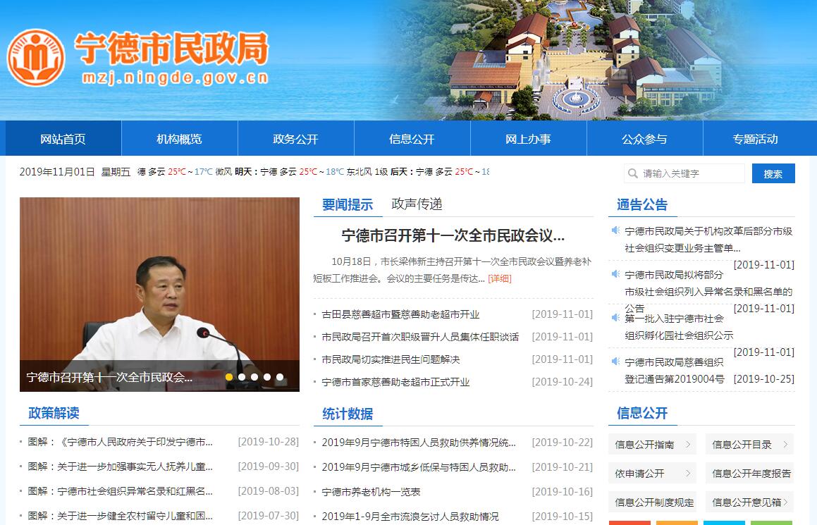 宁德市民政局主要职责:(一)贯彻执行国家有关民政工作的法律法规和政策,拟订并组织实施全市民政事业发展规划。(二)承担对社会团体、民办非企业单位进行登记管理和监察的责任,指导全市民间组织登记管理工作。(三)负责组织指导军队退役士兵、转业士官、复员干部、离退休干部和无军籍退休退职职工的接收安置工作,拟订和协调落实有关优抚、安置政策,负责烈士褒扬工作,组织和指导拥军优属工作,承担市双拥工作领导小组的日常工作。(四)负责组织协调救灾工作,负责组织核查、上报和发布灾情,管理、分配中央、省和市级救灾款物并监督使用,组织指导救灾捐赠和有关防灾减灾工作,牵头组织实施政策性农村住房保险。(五)牵头拟订社会救助规划和政策,健全城乡社会救助体系,负责城乡居民最低生活保障、临时救助、特困人员供养和城市生活无着人员救助工作。(六)拟订城乡基层群众自治建设和社区建设政策并组织实施,指导社区服务体系建设,提出加强和改进基层民主政治建设的建议,推动基层民主政治建设。(七)负责市内各级行政区域的设立、撤销、更名及政府驻地迁移的审核报批工作,组织指导地名管理和全市各级行政区域界线的勘定和管理,调处因行政区域界限而引发的有关问题,负责勘界成果资料管理,创建平安边界活动。(八)拟订社会福利事业发展规划和政策并组织实施,负责社会福利事业机构的管理,按规定负责全市福利彩票销售和资金管理工作,组织指导社会捐助工作,会同有关部门研究落实促进慈善事业发展的政策措施,指导老年人、孤儿和残疾人等特殊群体的权益保障工作。(九)指导全市婚姻登记管理、儿童收养登记管理工作,办理并指导涉外和涉港、澳、台、侨及出国人员的婚姻登记及儿童收养登记工作,推进婚俗改革。(十)负责全市殡葬管理,推行殡葬改革,指导殡葬服务机构管理工作。(十一)指导全市革命老区建设工作,协调扶持革命老区经济社会发展,协调办理涉及老区的事务,负责革命“五老”人员优待管理工作,联系和指导市老区建设促进会工作。(十二)会同有关部门拟订社会工作人才队伍建设规划和相关政策,指导社会工作人才队伍和相关志愿者队伍建设。(十三)承办市委、市政府交办的其他事项。