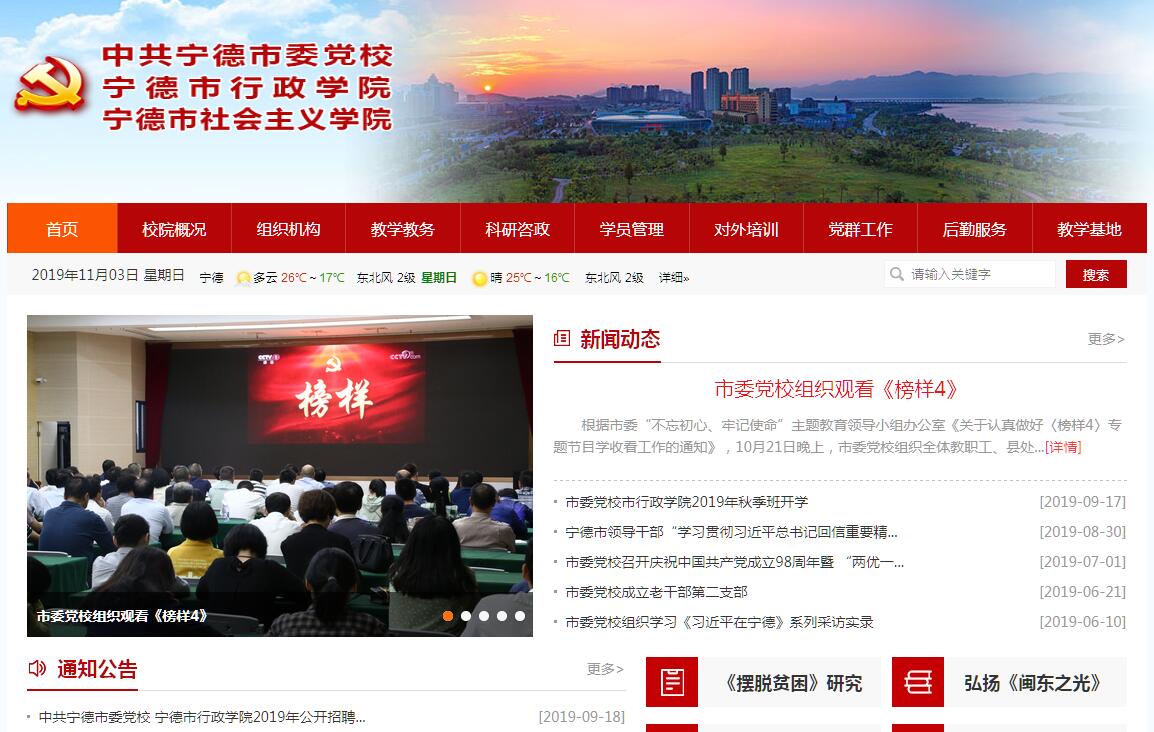 | 网站简介: 中共宁德市委党校创办于1952年6月,原称“中共福安地委党校”,1971年福安专区迁移宁德后,更名为“中共宁德地委党校”,1999年11月,宁德撤地设市,再更名为“中共宁德市委党校”。 2008年8月,宁德市委、市政府决定中共宁德市委党校与宁德市行政学院联合办学,实行“一套班子、两块牌子”的办学体制,增挂“宁德市社会主义学院”牌子。2015年11月迁入新校区,新校区占地面积100亩,建筑面积3.67万平方米,拥有综合教学楼、学员楼、礼堂、图书信息中心、学术报告厅、教工宿舍楼等。学院教学设施、信息化设备等配置齐全,可同时容纳450名学员在校培训。宁德市委党校现已成为国家行政学院、中央党校党建部、福建省委党校、厦门大学、省公务员局的教学点和基地。 |