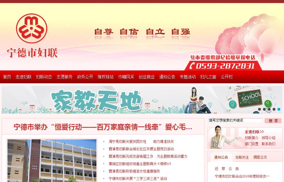 宁德市妇女联合会成立于2000年11月,是宁德市各族各界妇女在中国共产党领导下为争取进一步解放而联合起来的社会群众团体,是党和政府联系妇女群众的桥梁和纽带,是国家政权的重要社会支柱。基本职能是代表和维护妇女权益,促进男女平等。宁德市妇女联合会的任务是:1、团结、动员妇女投身现代化建设,促进经济发展和社会全面进步。2、教育、引导广大妇女发扬自尊、自信、自立、自强的精神,提高综合素质,促进全面发展。3、代表妇女参与国家和社会事务的民主决策、民主监督,参与有关妇女儿童法律、法规、规章和政策的制定,推动宁德妇女、儿童发展纲要的实施,维护妇女儿童合法权益。4、为妇女儿童服务。加强与社会各界的联系,协调和推动社会各界为妇女儿童办实事、办好事,促进妇女儿童事业的发展。5、加强基层妇女组织建设,配合党委组织部门抓好县(市、区)妇联班子建设,做好女干部的培养、教育、推荐工作。6、巩固和扩大各族各界妇女的大团结。加强同香港特别行政区、澳门特别行政区、台湾地区及华侨和海外华人妇女的联谊,促进祖国统一大业。 7、承担市妇女儿童工作委员会的日常工作。8、承担领导市妇联机关所属事业单位的工作。9、承担市委、市政府及省妇联交办的任务。