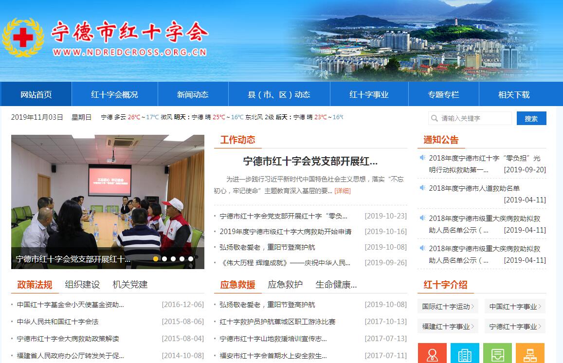 红十字会是世界三大国际组织之一(联合国、奥委会、红十字会)。宁德市红十字会是中国红十字会的地市级地方分会,也称中国红十字会宁德市分会。宁德市红十字会以发扬人道、博爱、奉献精神,保护人的生命和健康,促进人类和平进步事业为宗旨。1993年全国人大常委会颁布了《中华人民共和国红十字会法》,明确红十字会是从事人道主义工作的社会救助团体,也是目前唯一本身有立法的社会公益组织。宁德市红十字会1987年6月正式成立,至1989年全市县级以上行政区域全部建立地方分会。2004年省人大颁布了《福建省红十字会条例》,明确各级红十字会要配备专职工作人员,独立自主开展工作。2009年8月,市红十字会正式独立运行,行政级别由正科级升格为副处级。2003年6月,召开了第一次全市会员代表大会,选举产生了新一届理事会,现任会长由市政府黄建龙副市长担任。全市现有红十字基层组织118个,团体会员单位159个,红十字会员19781名,其中青少年会员11525名,红十字志愿者491名。红十字会在战争时期,主要是依照日内瓦公约及其附加议定书的有关规定开展战伤救护等工作;在和平时期,主要依法担负着备灾救灾、初级卫生救护、青少年活动、国际人道主义救援、志愿服务和政府委托事宜,以及开展国际和台港澳地区人道交流合作等职责。开展的具体工作和活动,概括起来主要是四个“三”:一是开展“三救”,即动员社会力量参与灾害救援、大力开展应急救护知识普及、积极开展人道救助活动;二是组织“三献”,即募无偿献血、造血干细胞捐献、遗体和人体器官捐献;三是工作“三个重点”,即农村与城市社区、医疗机构、学校与青少年;四是经常开展“三个活动”,即志愿服务行动、公益传播活动、两岸交流互动。多年来,特别是《中华人民共和国红十字会法》和《福建省红十字会条例》颁布施行后,在市委的关心、市政府领导联系和省红十字会的指导下,在国内外红十字组织和社会各界的大力支持下,宁德市红十字会大力弘扬“人道、博爱、奉献”的红十字精神,坚持以改善最易受损害群体的境况为目标,不断拓宽人道服务领域,红十字各项事业取得长足发展。各县红十字会体制全部理顺;总投资590万元集备灾仓库、管理办公、救护培训、志愿服务等功能于一体的宁德市红十字会备灾救灾中心于2013年9月投入使用;2006年开始实现了全市临床用血100%来自无偿献血;在人道救助方面,仅2011-2013年我市各级红十字会大力开展福建省红十字大病救助项目共争取救助资金4900多万元,受益群众达4404个家庭;2008年1月以来,“莫拉克”强台风、西南旱灾、青海玉树地震、闽西北洪灾、云南鲁甸地震等灾害发生后,我市红十字会均积极响应党和政府的号召,迅速开展市内外灾害救援,共接收社会捐赠款物2700多万元,发放救灾、救助款物1700多万元,其余均上缴上级红十字转汇灾区。市红十字会先后被省卫生厅、省红十字会、省军区后勤部评为“2008~2009年度全省无偿献血先进市”;被省卫生厅、红十字会授予“救两条生命还一家幸福”生命救助行动组织奖等。红十字会已经成为深受人民群众欢迎的爱心公益平台,成为人道领域党和政府的的得力助手。