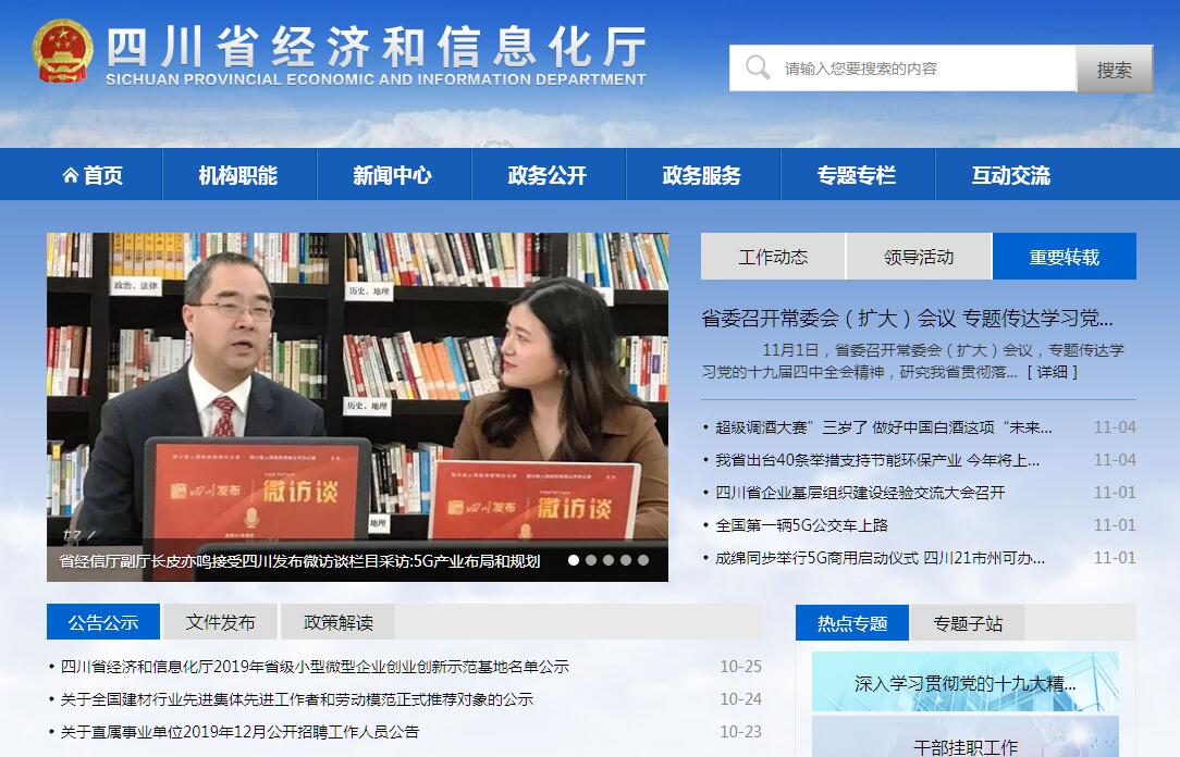 四川省经济和信息化厅(简称省经济和信息化厅),为省政府组成部门。其主要职责是:(一)贯彻实施国家有关工业经济、信息化和无线电管理的方针、政策和法律、法规,组织实施国家西部大开发战略等有关工业经济的政策措施,拟订全省有关工业经济、信息化和无线电管理的地方性法规、规章草案,负责本系统、本部门依法行政工作,落实行政执法责任制。组织推动信息化和工业化融合、工业化与城镇化联动,负责推进全省工业结构调整。(二)负责拟订新型工业化发展战略和重大政策,协调解决新型工业化进程中的重大问题,组织实施工业强省战略。参与制订国民经济和社会发展规划,负责制定并组织实施工业(不含能源,下同)、信息化相关行业的发展规划、年度计划和产业政策,拟订行业技术规范与行业标准并组织实施,指导行业质量管理工作。(三)监测、分析经济运行态势和质量,建立全省工业经济运行预警机制,拟订中、近期经济运行目标、政策并组织实施,协调解决经济运行中的重大问题。负责电力、煤炭、成品油、天然气等重要物资综合调控、紧急调度和交通运输协调工作,负责省级医药储备的监督管理。承办年度工业经济目标责任考核。(四)负责全省企业技术改造推进工作,组织制定并实施全省企业技术改造投资规划和政策,制定并发布全省企业技术改造投资项目引导目录。提出工业和信息化固定资产投资规模的意见,按照规定权限审批、核准、备案规划内全省企业技术改造项目,组织企业技术改造项目申报国家有关专项计划并组织实施。(五)负责全省企业技术创新体系建设,制定鼓励企业技术创新的政策措施,指导企业技术创新、技术引进、重大装备国产化和重大技术装备研制,编制下达全省企业技术创新项目计划并组织实施,按照规定程序会同有关部门组织企业技术中心申报、认定和建设管理工作。(六)负责全省产业园区建设发展的牵头服务工作,拟订并组织实施产业园区、产业集群发展规划和政策措施,指导产业园区合理布局,负责推进重点产业园区建设发展,推进园区公共配套设施建设,组织实施产业园区公共服务平台项目计划。(七)负责全省工业和信息化领域的节能降耗、清洁生产和资源节约与综合利用工作,协调推进工业化与生态环境协调发展中的重大问题,组织实施相关重大示范项目和新产品、新技术、新工艺、新设备、新材料的推广应用。(八)负责推进企业信用制度建设,负责中小企业信用担保和融资体系建设并实施行业监管,负责制订工业发展资金等财政专项资金使用计划,负责企业技术改造、技术创新、生产运行等涉及财政、信贷、税收、保险等方面问题的协调,指导工业企业直接融资工作,参与工业企业上市培育工作。(九)对国家重大工业经济政策实施情况进行督查,指导企业建立现代企业制度、改组改造、兼并重组,负责全省企业治乱减负工作,指导企业经营管理人员、专业技术人员培训,负责全省大企业大集团和龙头骨干企业的培育工作,负责全省中小企业发展的指导推进工作,综合协调有关部门拟订促进中小企业发展的政策措施,负责推进中小企业服务体系建设。(十)负责对全省工业各行业实施行业管理,制定并组织实施相关政策措施,拟订新材料、节能环保、航空航天、生物医药等战略性新兴产业发展规划、年度计划、政策措施并组织实施。拟订加快农产品加工业发展的政策措施,参与推进农业产业化龙头企业建设,参与推进农业现代化和新农村建设。指导工业、信息化和无线电领域的社会中介组织发展。(十一)统筹推进全省信息化工作,制定并组织实施相关政策,指导电子政务、企业信息化、电子商务和物联网发展,推动跨行业、跨部门面向社会服务网络的互联互通和信息资源共享。(十二)负责全省信息基础设施建设的规划、协调和管理,组织相关部门制订通信管线规划并承担相应的管理工作,协调电信市场涉及社会公共利益的重大事项。(十三)组织协调全省信息安全保障体系建设,指导和监督政府部门、重点行业的重要信息系统与信息网络的安全保障工作,指导信息安全防范工作,参与处理网络与信息安全重大事件。(十四)统一配置和管理全省无线电频谱资源,依法监督管理无线电台(站),负责无线电电磁环境保护工作,负责无线电监测、检测和干扰查处,协调军地间和省际间无线电管理相关事宜,维护空中电波秩序,依法组织实施无线电管制。(十五)会同有关部门提出工业和信息化领域对外开放和利用外资的政策建议,参与区域经济合作和承接产业转移工作。指导工业和信息化企业开展对外交流与合作、国际化经营、境外投资及兼并重组。(十六)承担省政府公布的有关行政审批事项。(十七)承办省政府交办的其他事项。