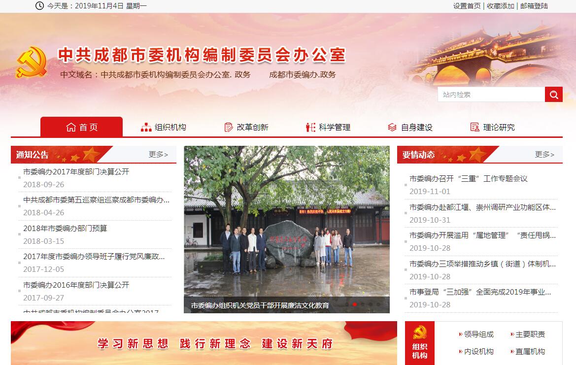 中共成都市委机构编制委员会主要职责:(一)贯彻执行中央、省关于行政管理体制改革、机构改革、事业单位改革以及机构编制管理的方针政策和法律、法规、规章,拟订相关政策并监督实施。(二)研究拟订全市行政管理体制改革和机构改革总体方案;负责市级部门“三定”规定和区(市)县机构改革方案审核工作;指导、协调区(市)县、乡镇(街道)行政管理体制改革和机构改革工作;负责机构改革和职能运行效果评估工作;负责清理和调整市政府工作部门行政审批事项,推进行政审批制度改革;参与行政区划调整工作。(三)拟订全市行政管理体制改革中长期规划、年度工作计划并组织实施;负责全市统筹城乡行政管理体制机制研究,收集、综合分析全国行政管理体制改革信息,并提出改革对策和建议。(四)贯彻执行有关行政审批制度改革工作的方针政策和法律、法规、规章,牵头组织实施全市行政审批制度改革工作,负责拟订相关改革的规划和年度工作方案,研究提出全市行政审批制度改革的政策建议; 指导全市行政审批制度改革工作,检查、评估、督促行政审批制度改革政策措施落实; 向市政府提出市级各部门需要取消、保留、下放行政审批项目的意见; 向市政府提出市级各部门需要取消、保留、下放行政审批项目的意见。(五)负责市委、市政府各部门,市人大、市政协机关,市法院、市检察院机关,各民主党派市委机关,市人民团体机关的机构编制管理;负责市政府派出机构、驻外办事机构的机构编制管理;牵头协调市级各部门之间以及市级各部门与区(市)县之间的职责分工。(六)拟订全市行政编制、政法专项编制总额分配方案,审核、报批跨层级调整行政编制事项;负责全市行政、事业编制总量控制和动态管理;负责市级机关和事业单位补充人员的核批工作。(七)审核区(市)县副局级及以上机构和按照副局级及以上规格管理机构的设置、调整;审核区(市)县副局级及以上领导职数的配备;指导、监督区(市)县机构编制管理工作。(八)拟订全市事业单位改革方案、实施意见、机构编制配备标准及相关配套政策;负责市属事业单位机构编制管理工作;负责参照公务员法管理事业单位职责的审核工作;审核各区(市)县事业单位改革总体方案,指导、监督区(市)县事业单位改革和机构编制管理工作。(九)监督检查全市行政管理体制改革、机构改革、事业单位改革以及机构编制管理有关规定的执行情况;建立机构编制工作考核评估制度;会同有关部门查处机构编制违法违纪行为。(十)负责全市事业单位登记管理、全市党政群机关和事业单位政务与公益专用中文域名注册管理工作。(十一)承办市委、市政府和市委编委交办的其他工作。