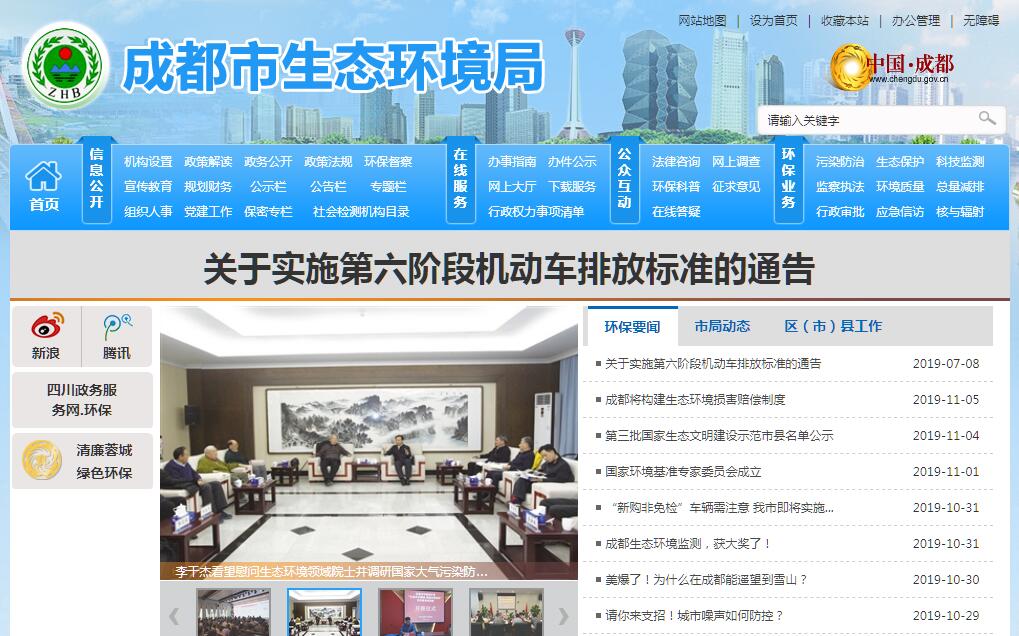 成都市生态环境局是负责全市生态环境工作的市政府工作部门。其主要工作职能:(一)负责建立健全全市生态环境基本制度。贯彻执行国家和省有关生态环境的法律法规规章、标准基准和技术规范;起草生态环境保护的地方性法规和规章草案,会同有关部门拟订全市生态环境政策、规划,并依法组织实施和监督检查;会同有关部门编制并监督实施重点区域、流域、饮用水水源地等生态环境规划和大气、水、声等环境功能区划;参与拟订主体功能区划;参与制定与生态环境相关的经济、技术、资源配置和产业政策。(二)负责全市生态环境问题的统筹协调和监督管理。承担较大突发环境污染事件和生态破坏事件的调查处理;指导协调区(市)县对一般突发生态环境事件的应急、预警工作;牵头实施生态环境损害赔偿制度;协调解决有关跨区(市)县环境污染纠纷,统筹协调全市重点区域、流域的生态环境保护工作。(三)负责监督管理全市减排目标的落实。组织制定并监督实施全市各类污染物排放总量控制和排污许可证制度,确定大气、水等环境纳污能力,提出实施总量控制的污染物名称和控制指标,监督检查区(市)县污染物减排工作任务完成情况,实施生态环境保护目标责任制。(四)参与提出全市生态环境领域固定资产投资规模和方向、市级财政性资金安排的意见,按市政府规定权限审批、核准全市规划内和年度计划规模内固定资产投资项目,配合有关部门做好组织实施和监督工作。(五)负责全市环境污染防治的监督管理。组织制定并监督实施全市大气、水、土壤、噪声、光、恶臭、固体废物、化学品、机动车等污染防治管理制度;监督指导农业面源污染防治工作,会同有关部门监督管理饮用水水源地生态环境保护工作,参与城乡生态环境综合整治和区域大气污染联防联控工作。(六)指导协调和监督全市生态保护修复工作。负责组织编制并监督实施生态保护规划,监督对生态环境有影响的自然资源开发利用活动、重要生态环境建设和生态破坏恢复工作;负责制定各类自然保护地生态环境监管制度并监督执法,承担自然保护地、生态保护红线相关监管工作;指导生态示范创建工作;参与野生动植物保护、湿地生态环境保护、荒漠化防治等监督工作;指导协调和监督农村生态环境保护,监督生物技术环境安全,牵头生物物种(含遗传资源)工作,组织协调生物多样性保护工作,参与生态保护补偿工作。(七)负责全市核与辐射安全的监督管理。起草核与辐射安全地方性法规、规章草案,并依法组织实施和监督检查;拟订并监督实施核与辐射安全政策、规划、标准;牵头负责核安全工作协调机制有关工作,负责辐射环境事故应急处理工作,参与核事故应急处理;监督管理放射源与射线装置安全,监督管理核技术应用、电磁辐射、伴有放射性矿产资源开发利用中的污染防治;负责核与辐射建设项目“三同时”(同时设计、同时施工、同时投产使用)管理工作,参与核设施安全、核设施污染防治监督管理相关工作,参与对核材料管制和民用核安全设备的设计、制造、安装和无损检验活动的监督管理;负责核与辐射环境执法工作;参与反生化、核与辐射恐怖事件的防范和处置。(八)负责全市生态环境准入的监督管理。受市政府委托对重大经济和技术政策、发展规划以及重大经济开发计划进行环境影响评价;按规定审批或审查重大开发建设区域、规划、项目环境影响评价文件;拟订并组织实施生态环境准入清单;负责职责范围内的审批服务便民化工作。(九)负责全市生态环境监测、统计和信息发布工作。监督执行国家和省颁布的各类环境标准、制度和规范;负责实施执法监测、污染源监督性监测、温室气体减排监测、应急监测;参与生态环境质量监测站点设置和生态环境质量监测;负责生态环境质量预警预测,组织建设和管理全市生态环境监测网;负责生态环境统计工作;统一发布生态环境综合性报告和重大生态环境信息。(十)负责应对气候变化工作。组织实施国家和省应对气候变化及温室气体减排重大战略、规划和政策,组织拟订全市应对气候变化的规划和政策措施。(十一)组织协调生态环境保护督察工作。协调全市接受中央和省生态环境保护督察的相关工作;督促检查各区(市)县、市级有关部门贯彻落实国家和省、市生态环境保护有关方针政策、法律法规规章、决策部署及落实“党政同责、一岗双责”的情况。(十二)统一负责全市生态环境执法工作。组织开展生态环境保护执法检查;监督实施建设项目生态环境保护设施“三同时”制度和环境影响评价事中事后监管;查处生态环境违法问题;负责生态环境保护综合执法队伍建设。(十三)组织指导和协调全市环境保护宣传工作。制定并组织实施全市环境保护宣传有关规划和计划;推动社会组织和公众参与生态环境保护;会同有关部门依法对保护和改善生态环境有显著成绩的单位和个人给予表扬和奖励。(十四)开展全市生态环境科技工作。负责生态环境保护科技成果的管理和推广应用;组织生态环境重大科学研究和技术工程示范,推动生态环境技术管理体系建设。(十五)开展生态环境对外合作交流。参与协调市内重要生态环境保护国际活动和区域合作,管理全市生态环境系统对外合作,参与处理涉外生态环境事务,负责与生态环境保护国际组