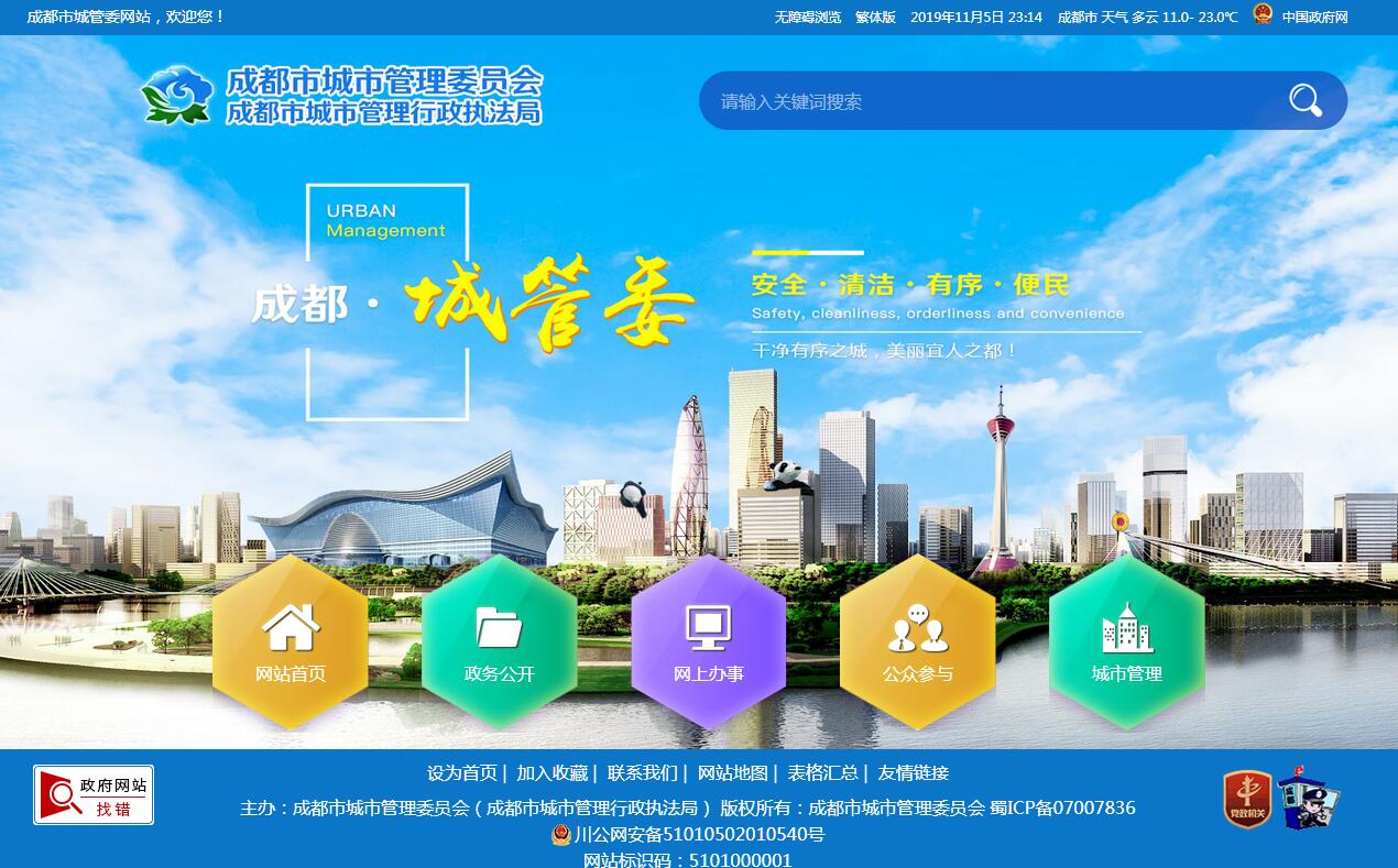 成都市城市管理委员会主要职责:(一)贯彻执行国家、省、市有关城市管理工作的方针政策和法律、法规、规章;起草有关地方性法规、规章草案和政策;拟订城市管理的发展战略、中长期发展规划和年度工作计划并组织实施;制定城市管理、城市管理行政执法制度和规范并组织实施。(二)负责全市城市管理的统筹协调和监督检查;牵头负责建立城市管理综合协调体系和责任体系;负责推进城市管理信息化建设;会同有关部门监督管理城市管理行政事业性收费。(三)负责城市市容环境卫生监督管理;会同有关部门编制环境卫生设施专项规划,制定建设项目环卫设施配套标准,参与建设项目规划条件并联审批及竣工验收;组织城市重要环卫设施项目建设方案审查;制定环卫清扫、冲洗除尘、生活垃圾分类处置等管理标准和技术规范并监督实施;监督管理餐厨垃圾、生活垃圾等固体废弃物的排放、收集、运输、处置以及建筑垃圾的排放、运输和消纳处置;监督医疗废物处置。(四)负责城市道路、桥梁等市政基础设施的监督管理和维护;参与城市道路、桥梁设施(含新建、扩建、改建)重点工程的规划、建设、竣工验收,负责接收移交监督管理工作;负责组织城市桥梁安全运行监控;监督管理挖掘和占用城市道路、桥梁改造施工及依附城市道路、桥梁设置设施。(五)负责中心城区户外广告和招牌设置的监督管理;参与编制中心城区户外广告设置规划并组织实施;负责城市市容秩序的监督管理;负责制定市容秩序管理相关制度、办法并监督实施;对临时性占用城市道路两侧和公共广场影响市容秩序的行为进行监督管理。(六)负责城市道路照明设施、夜景灯饰的规划、管理和维护;监督管理中心城区路灯规划、城市夜景灯饰和城市照明工程;负责对城市道路照明工程、夜景灯饰工程建设方案的审查和检查验收。(七)集中行使市容秩序管理、环境卫生管理、城市绿化管理、市政设施管理、户外广告和招牌设置管理方面法律、法规、规章规定的行政处罚权;集中行使环境保护、食品卫生、工商行政管理方面法律、法规、规章规定的部分行政处罚权。(八)负责全市城市管理行政执法的组织、协调、监督和检查工作;负责对城市管理行政执法人员行使职权情况实施督察;牵头组织全市性城市管理重大执法活动和专项执法行动。(九)负责对中心城区城市管理行政主管部门的业务领导;牵头组织查处中心城区跨区域城市管理行政执法案件和重大案件;负责受理全市城市管理行政复议案件,受理中心城区城市管理行政执法方面的投诉。(十)负责城市管理的对外交流工作;负责城市管理的科学研究和技术推广工作;组织开展城市管理的宣传教育、文化建设和社会动员工作。(十一)牵头组织全市城乡环境综合治理和扬尘治理工作;承担城市管理应急突发事件的处置和应急抢险工作;指导区(市)县城市管理工作。(十二)承办市政府公布的有关行政审批事项;组织实施城市管理特许经营权出让相关工作。(十三)承办市委、市政府交办的其他事项。