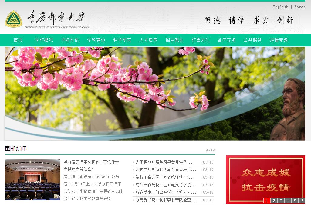 重庆邮电大学是国家布点设立并重点建设的几所邮电高校之一,是工业和信息化部与重庆市共建的一所特色鲜明、优势突出,在信息通信领域具有重要影响的高水平教学研究型大学。学校发轫于1950年,在抗战时期交通部邮政总局原址上开办邮政人员培训班;在此基础上,先后举办西南邮电分校、重庆邮电学校和重庆电信学校;1959 年由国务院批准成立为重庆邮电学院,并开始本科教育;1965年成为当时四川省招收研究生的10所院校之一;于1970年改建为电信总局529厂,1973年改建为邮电部第九研究所,1979年恢复办学。2000年由信产部划转重庆市管理,实行部市共建;2006 年更名为重庆邮电大学,2013年批准为博士学位授予单位;近年来,学校抓住西部大开发、重庆大建设、信息产业大发展的历史机遇,立足行业,服务地方,加强建设,加快发展。学校现有在校学生2.3万余人,其中研究生 3400余人。在职教职工 1700 余人,其中高级职称 730余人,博士生导师和硕士生导师700余位,我校校友、中国工程院原副院长邬贺铨院士为我校名誉校长、校董事会主席。学校外聘了中国科学院、中国工程院和英国、加拿大、美国、波兰、印度等国30 余名院士及150余位知名专家学者为我校兼职教授或名誉教授。学校有国家特支计划、千人计划、长江学者、百千万人才工程、新世纪优秀人才支持计划、重庆市有突出贡献的中青年专家、两江学者、百人计划、学术技术带头人、百名学术学科领军人才、巴渝学者等各类高层次人才100人,全国五一劳动奖章、全国模范教师、全国师德标兵、全国高等学校优秀骨干教师、全国优秀科技工作者、重庆市名师、重庆市优秀教育工作者等获得者110余人,国家及省部级科技创新团队、教学团队等22支。学校坚持育人为本,办学60余年来,为信息通信行业和地方培养输送了9万余名各类人才,被誉为“中国信息通信人才的摇篮”。现为全国大学生文化素质教育基地、全国首批信息专业人才培训基地、全国首批通信科普教育基地、重庆市软件人才和微电子人才培养基地、重庆市研究生教育创新基地。学校主动适应信息行业产业发展需求,加强学科专业建设。学校现有学院16个,本科专业51个、国家级特色专业5个、重庆市特色专业和“三特”专业21个、 “三特”学科专业群4个,涵盖工、理、经、管、文、艺、法、教等学科门类。拥有重庆市“双一流”学科3个、重庆市重点学科14个、博士后科研工作站3个、一级学科博士学位授权点2个、一级学科硕士学位授权点15个、二级学科硕士学位授权点3个,经教育部批准具有推荐本科生免试攻读研究生资格。学校积极推进课程教育改革,现建有5个国家级工程实践教育中心,10个国家及重庆市实验教学示范中心,47门国家及重庆市精品课程和双语教学示范课程,16个国家及重庆市教学团队。自主研发了包含1500余门本科课程资源的课程中心,推进课程资源在线化;建成一批重庆市精品在线开放课程和国家级精品资源共享课、精品视频公开课,开展随堂在线课程录播,引入尔雅、超星、智慧树、至善网、高校邦等在线课程,开展翻转课堂实践,探索线上线下混合教学方法,开展在线教学。学校作为重庆唯一的教育综合改革试点高校,近年来,不断深化教育教学改革,承担国家及部省级教改项目180余项,获国家级教学成果二等奖4项,重庆市教学成果一等奖11项。学校高度重视学生创新创业教育和实践能力培养,已建成校外实习实训和就业基地200余个,依托创新创业教育学院,大力引进思科等知名企业的双创课程,并构建集通识教育、创新教育、创业教育训练为一体的专业化创新创业教育体系,着力培养学生创新思维与意识;重视学生实践能力培养,组织学生参加各类双创比赛,培养效果不断显现。我校是全国“挑战杯”大学生课外科技竞赛发起高校之一,获第八届“挑战杯”中国大学生创业计划竞赛金奖,获得第十四届“挑战杯”全国大学生课外学术科技作品竞赛全国一等奖1项、二等奖1项、三等奖4项,总成绩在重庆市属高校中排名第一;参加数模竞赛成绩连续两年排名全国高校第二;在美国大学生数学建模竞赛中获得该赛事最高奖项—特等奖1项;参加2012年“全国大学生电子设计竞赛”获得该项赛事最高荣誉“TI”杯;参加第一、第二、第三届中国“互联网+”大学生创新创业大赛获奖成绩均位列重庆赛区第一。近五年来,学生获国家级奖励400余项,部省级奖励1500余项。学校本科毕业生就业率保持在95%以上,毕业研究生就业率保持在98%以上,被评为“全国毕业生就业典型经验高校”。学校坚持自主创新,是全国信息产业科技创新先进集体和国家高技术产业化示范工程基地,被誉为“中国数字通信发源地”。学校现建有“国家宽带移动通信军民结合终端设备动员中心”、移动通信终端与网络控制国家地方联合工程研究中心、重庆工业物联网国际科技合作基地、全国首个“信息无障碍工程研发中心”等42个国家发改委、科技部、工信部、教育部及重庆市重点实验室、工程研究中心和人文社科基地。“新一代信息网络与终端协同创新中心”“工业物联网协同创新中心”“大数据协同创新中心”入选重庆市“2011协同创新中心”择优支持计划。学校在通信网及测试技术、新一代宽带无线移动通信、计算机网络与信息安全、智能信息处理、物联网与