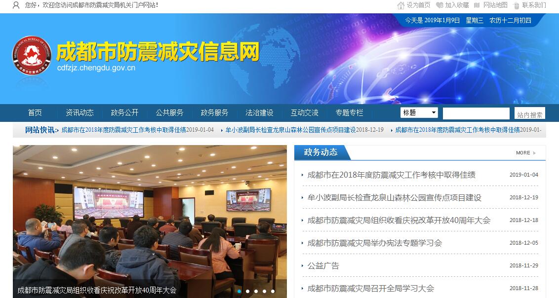 | 网站简介: 成都市防震减灾局主要职责:1、贯彻执行国务院和省有关防震减灾工作的方针、政策和法规。2、制定成都市防震减灾事业中、长期发展规划,编制防震减灾工作年度计划并组织实施。3、管理全市的地震监测预报工作,会同有关部门制定成都市地震应急反应预案。4、承担市政府防震减灾工作领导机构的日常工作,负责全市的震情通报和地震灾害速报,配合上级防震减灾工作业务主管部门提出震后趋势判断意见,参与地震灾害损失评估,参与制定地震灾区的重建规划。5、管理全市地震烈度区划成果的应用,按照有关规定监督、管理全市工程建设场地地震安全性评价工作。6、按照有关规定管理全市工程建设项目以地震参数或烈度表述的抗震设防标准,监督全市重大工程设施的抗震设防工作。7、会同有关部门开展防震减灾宣传教育工作,普及防震减灾知识,提高全社会的防震减灾意识;并按照有关规定审核防震减灾宣传报道。8、指导区(市)县防震减灾机构开展防震减灾工作。9、承担市政府和上级防震减灾业务主管部门交办的工作。 |