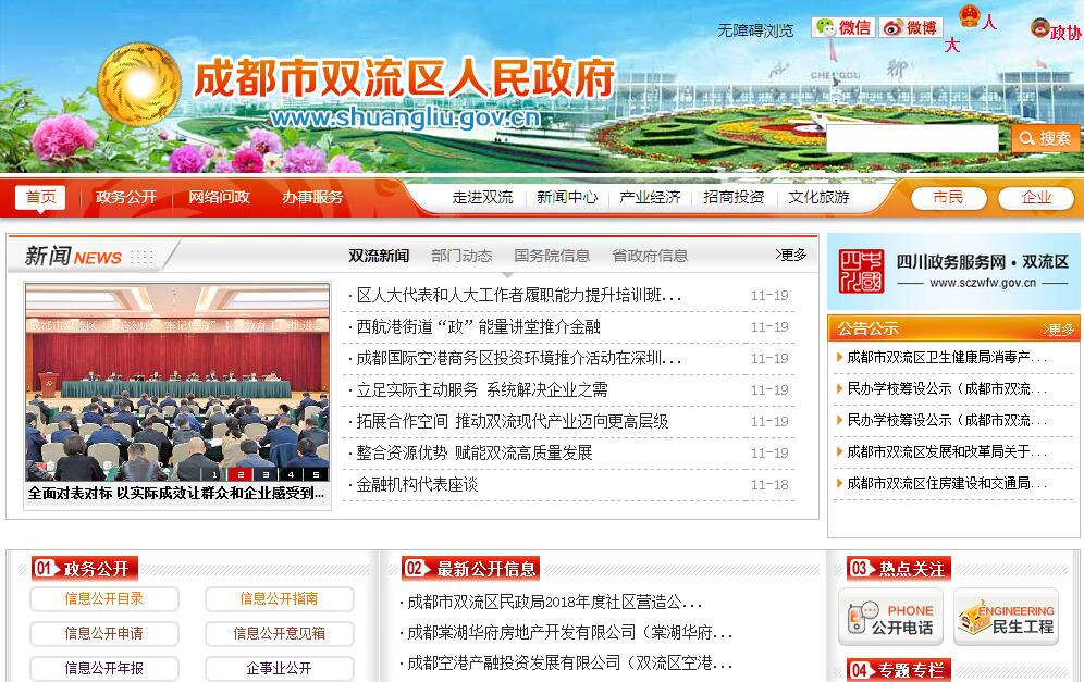双流区地处成都市西南郊,城区距成都市10公里。东连龙泉驿区和简阳市,南接眉山市仁寿县和彭山区,西邻新津县和崇州市,北靠温江区、青羊区、武侯区及锦江区。地理位置介于东经103°47′-104°15′、北纬30°13′-30°40′。全域双流土地面积为1032平方公里,其中,城区面积132.95平方公里,耕地面积442平方公里。2013年12月,区境万安镇、兴隆镇等11个镇及华阳街道与正兴镇部分区域的社会管理、公共服务等事务由四川省天府新区成都片区管理委员会管理和服务,其余部分称之为新双流,新双流辖区面积为466平方公里,其中,建成区面积89.99平方公里、耕地面积184.91平方公里。2017年是双流纳入成都“11+2”中心城区的开局之年。在市委、市政府和区委的坚强领导下,在区人大、区政协的监督支持下,我们紧紧依靠全区人民,坚持以习近平新时代中国特色社会主义思想为根本遵循,以成都建设全面体现新发展理念国家中心城市为工作统揽,以建设国家级临空经济示范区为目标引领,全面履行政府职责,聚焦“中优”、融入“南拓”,全力推动全区经济社会实现平稳健康发展。全年实现地区生产总值743.8亿元、增长8.8%,财政总收入262.5亿元,均达到2013年全域双流水平;一般公共预算收入增长11.7%,完成固定资产投资561.5亿元,社会消费品零售总额197.8亿元、增长14.1%,城乡居民人均可支配收入分别增长8.3%、8.9%。经济综合实力全国百强区排名第38位。获评全省县域经济发展先进县、县域经济发展模范县。获批国家级临空经济示范区。