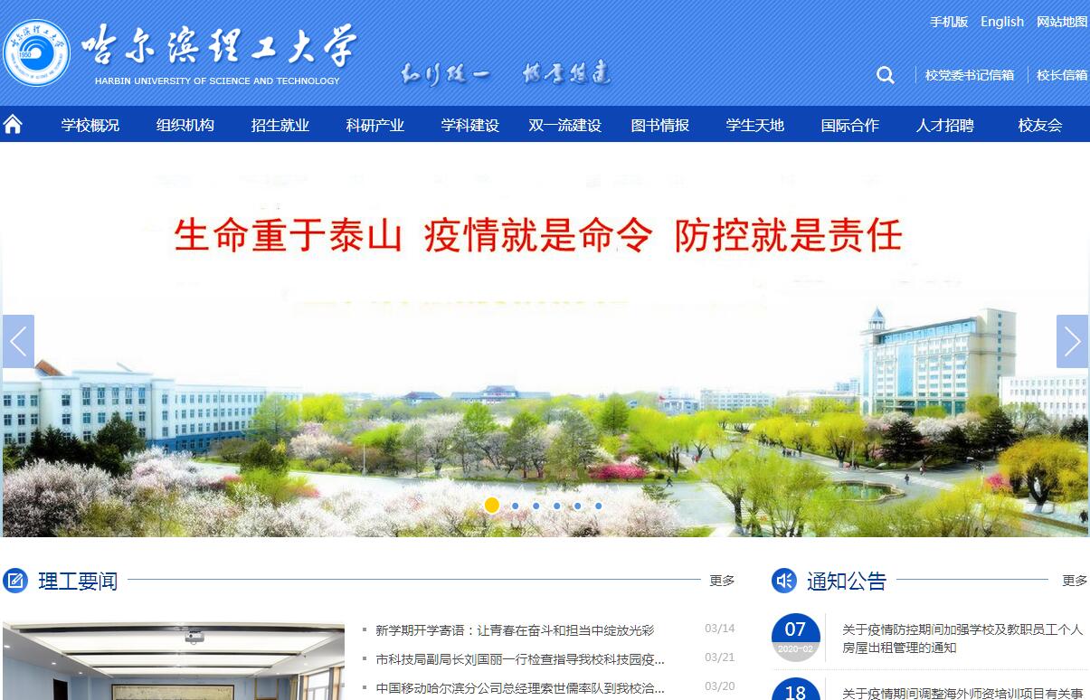 哈尔滨理工大学由原机械工业部所属的哈尔滨科学技术大学、哈尔滨电工学院和哈尔滨工业高等专科学校于1995年合并组建而成,1998年划转黑龙江省属,实行中央与地方共建、以地方为主的管理体制,2008年,在黑龙江省高等教育强省建设规划中被确定为重点建设的十所高水平大学之一。原三校均始建于二十世纪五十年代,历经60多年的发展,学校现已成为一所以工为主、理工结合,经、管、哲、文、法、教育、艺术等九个学科门类协调发展、具有较强办学实力和鲜明特色的教学研究型大学。2003年,被教育部授予“本科教学工作水平评估优秀学校”。2008年,获批教育部“国家大学生创新性实验计划”实施高校。2011年,入选首批“中西部基础能力建设工程”高校。同年被教育部授予“全国毕业生就业典型经验高校”荣誉称号,获批教育部“卓越工程师教育培养计划高校”。2015年,成为黑龙江省人民政府与国家国防科技工业局共建高校。2018年,入选黑龙江省国内“双一流”大学建设高校。学校共有4个办学区,其中在哈尔滨市有东、西、南3个办学区,在山东省荣成市设有哈尔滨理工大学荣成校区。学校总占地面积209.86万平方米,教学基础设施面积95.6万平方米。图书馆藏书256万册,电子图书112.2万册,中外文期刊16万册,文献数据库26种。现有教职工2705人,其中专任教师1752人,副高职以上人员1344人,有中国工程院院士1人,省级教学名师14人;全日制在校生33496人,留学生近200人。学校设有18个学院、1个教学部、1个教学实践中心和一个创新创业教育指导中心;有60个本科专业、1个专科专业,有8个国家级第一类特色专业、3个国家级“卓越工程师教育培养计划”试点专业、1个国家级本科专业综合改革试点专业、19个省级重点专业、6个省级本科专业综合改革试点专业、2个省级“卓越工程师教育培养计划”试点专业;有8个博士学位授权一级学科、28个博士学位授权二级学科、21个硕士学位授权一级学科、90个硕士学位授权二级学科、5个专业硕士学位授权类别和27个硕士专业学位授权领域,4个国防特色学科。电气工程、仪器科学与技术、材料科学与工程、机械工程、管理科学与工程、工商管理、计算机科学与技术等7个学科设有博士后科研流动站。高电压与绝缘技术为国家级重点学科,另有10个省级重点一级学科。有省部级及以上重点实验室(工程中心)11个,其中,“黑龙江省电介质工程重点实验室—省部共建国家重点实验室培育基地”通过科技部验收并被评定为“优秀”,“黑龙江省高效切削及刀具技术工程实验室”被国家发改委批准为“高效切削及刀具国家地方联合工程实验室”,“先进电气装备制造与智能运行协同创新中心”为首批黑龙江省“2011协同创新中心”。有6个黑龙江省高校重点实验室,“黑龙江先进加工技术及智能制造重点实验室”和“黑龙江省医用生物力学与材料重点实验室”通过黑龙江省重点实验室首批备案。有4个黑龙江省高校校企共建工程研究中心和1所甲级资质的建筑设计院;有国家大学科技园1个,国家级实验教学示范中心3个,国家级工程实践教育中心6个,国家级大学生校外实践教育基地2个。有国家级精品资源共享课1门,国家级精品视频公开课2门。“十二五”以来,学校共承担“973”、“863”项目和国家基金等国家计划项目232项,企事业委托项目1577项;科技成果获省部级奖励111项;发表学术论文7000余篇,其中被三大检索收录4600余篇;申报专利7533件、获授权专利3971件。在教学研究方面,继2009年获国家级教学成果二等奖后,获省部级教学成果一等奖14项、二等奖31项,省级教育科学研究成果一等奖5项、二等奖15项、三等奖12项。承担省部级教育教学研究项目440项。学生参加省级及省级以上各类竞赛获奖9520人次,其中国际级195人次、国家级2094人次、省级及地区级7231人次;2011-2017年获批大学生创新创业训练计划国家级立项166项、省级立项241项。学校主办有《电机与控制学报》、《哈尔滨理工大学学报》、《科技与管理》、《思想政治教育研究》四种公开发行学术期刊,其中《电机与控制学报》为EI数据库收录期刊、中国科学引文数据库(CSCD)收录期刊、北大中文核心期刊要目总览(2014版)收录期刊、中国高校百佳科技期刊;《哈尔滨理工大学学报》为北大中文核心期刊要目总览(2014年版)收录期刊、中国科技核心期刊、中国高校编辑出版质量优秀科技期刊;《科技与管理》为RCCSE中国核心学术期刊(2017-2018)、中国高校优秀科技期刊;《思想政治教育研究》为中国社会科学引文索引(CSSCI)(2017-2018)扩展版来源期刊、中国人文社会科学核心期刊、RCCSE中国核心学术期刊(2017-2018)、全国高校百强社科期刊。学校坚持内涵建设与外延发展相结合的办学方针,不断拓宽国际间交流与合作渠道,现已与欧洲、美洲和亚太地区20余个国家的近60所国(境)外高水平大学和科研机构建立了长期稳定的合作关系,积极开展学生联合培养、教师学术交流及合作科学研究等实质性合作,不断提升学校的办学水平和综合实力。建校60多年来,学校为全国制造业培养了数以万计的优秀人才,很多毕业生都已成为大中型企业和相关领域的技术和领导骨干,学校被社会誉为“现代工程师的摇篮”,被企业(行业)誉为电线电缆行业的“黄埔军校”。面向未来,哈尔滨理工大学将以“稳定办学规模