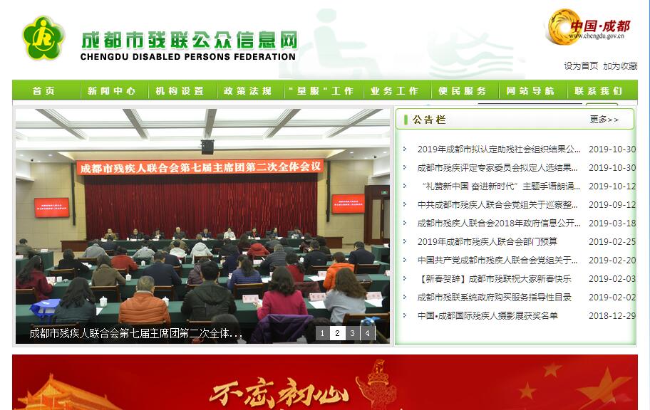 成都市残疾人联合会是中国残疾人联合会和四川省残疾人联合会的地方组织,是将残疾人自身代表组织、社会福利团体和事业管理机构融为一体的残疾人事业团体。其主要职责:(一)听取残疾人意见,反映残疾人需求,维护残疾人权益,为残疾人服务。(二)团结、教育残疾人遵守法律,履行应尽的义务,发扬乐观进取精神,自尊、自信、自强、自立,为社会主义建设贡献力量。(三)弘扬人道主义,宣传残疾人事业。沟通政府、社会与残疾人之间的联系,动员社会理解、尊重、关心、帮助残疾人。(四)开展残疾人康复、扶贫、教育、劳动就业、文化、体育、科研、用品供应、福利、社会服务、无障碍设施和残疾预防工作,创造良好的环境和条件,扶助残疾人平等参与社会生活。(五)协助政府研究、制订和实施残疾人事业的政策、规划和计划;起草有关保障残疾人权益的地方性法规草案;调查掌握残疾人状况,向政府提出决策建议,对有关业务领域进行指导和管理。(六)协助区(市)、县党委考察残联领导班子和做好残联干部的管理工作,对全市县以上残联(协会)领导干部和大中型企事业单位残联组织负责人进行培训。(七)承担市政府残疾人工作协调委员会的日常工作,做好综合、组织、协调和服务。(八)组织实施残疾人分散按比例就业工作;指导监督和宏观管理残联系统的残疾人福利企业,会同有关部门制定并监督实施残疾人社会福利生产的扶持保护政策。(九)指导和管理各类残疾人社团组织。(十)统筹开展为残疾人事业募捐活动。(十一)开展残疾人事业的对外交流与合作。(十二)承担市委、市政府和上级残联交办的其他工作。