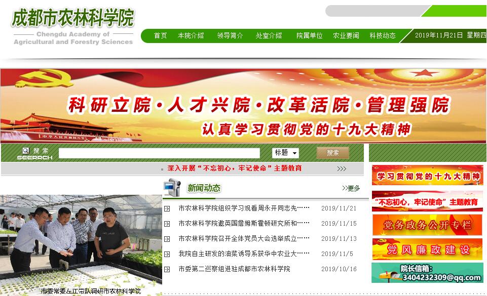 成都市农林科学院是在整合成都市农业科技资源基础上,于2007年成立的成都市人民政府直属正局级事业单位,现有九个研究所:都市现代农业与信息研究所、园艺研究所、作物研究所、农业装备研究所、林业研究所、水产研究所、农业生物环境与能源研究所、畜牧研究所、农产品加工与贮藏研究所,六个处室:行政(党委)办公室、人事处、财务处、科技规划处、监察审计处、产业发展与成果转化处。全院总编制282人,在编职工234人;有科技人员160人,其中正高级职称8人、副高级职称64人,博士8人,硕士61人;市级劳动模范9人,获国家级有突出贡献专家、享受国务院政府特殊津贴、四川省创新团队专家、四川省优秀专家、成都市优秀专家等称号以及成都市政府特殊津贴的专家共36名。成都市农林科学院主要职责是开展农业、林业、水产业的基础技术研究、应用研究和技术推广等公益性农业服务,承担国家、省、市下达的相关任务;开展农业、林业新品种、新技术和水产品选育(引进)及配套技术的研究与应用,开展相关科学技术宣传、咨询和服务;开展农业科技的研发推广及农业和农村实用人才的短期培训。成都市农林科学院是集科研、培训、推广于一体的综合性农林科研机构。2010年2月,成都市农林科学院整体搬迁至温江新院区。新院区占地总面积297亩,科研试验基地730亩,总建筑面积31054平方米,建有专用实验室、通用实验室等科研用房,科技成果展示厅、图书馆、档案室、学术报告厅、标本及成果陈列室等科研辅助用房,以及贮藏室、冷冻库、机具库、标准厂房等,另建有22000平方米钢架大棚和隔繁网室。院确立了“科研立院、人才兴院、改革活院、管理强院”的指导思想和“一二三五六”的工作思路。成都市农林科学院建有国家油菜改良中心四川成都分中心、国家油菜原原种繁殖基地、四川省最大的马铃薯原原种脱毒快繁基地、四川省畜牧科学研究院成都分院、四川省林业生态环境监测中心成都分中心、成都优质油菜工程技术研究中心、成都优质蔬菜工程技术研究中心;是国家现代农业产业技术体系成都油菜综合试验站、成都马铃薯综合试验站、成都蔬菜综合试验站技术依托单位。主要优势学科有:油菜、蔬菜、水稻、马铃薯、林业苗木、沼气设计等。