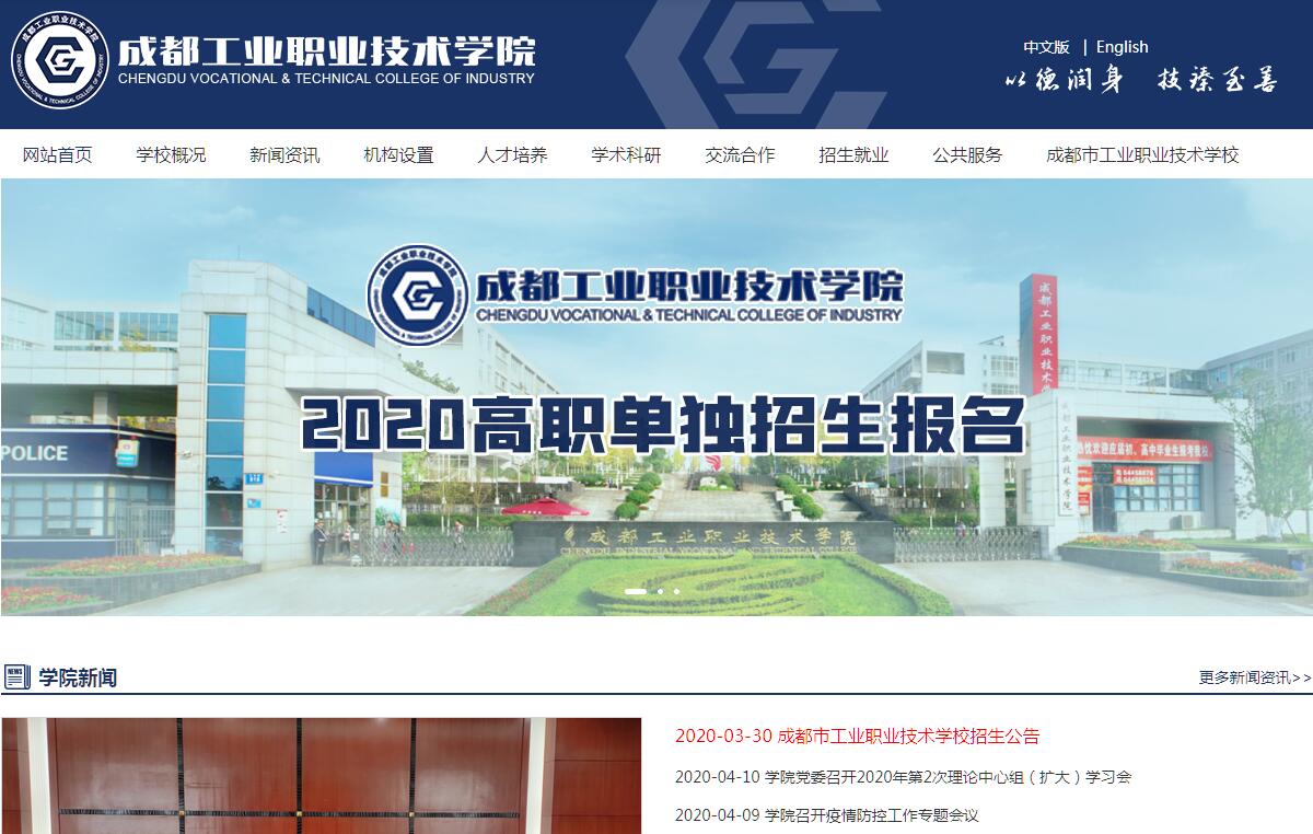 成都工业职业技术学院,是由成都市人民政府举办、四川省教育厅主管的一所以工科为主的公办全日制高等职业技术学院。学院秉承"以德润身,技臻至善"的校训,坚持中职与高职一体、学历教育与非学历教育并重、职前教育与职后教育并举,着力创建现代治理典范学院、人才培养示范学院、产教融合特色学院、创新创业实践学院、工业文明传承学院,为区域经济发展培养高素质劳动者和技术技能型人才。学院肇始于1951年7月,整合原6所优质学校(成都铁路运输学校、成都市工业学校、成都市财政贸易学校、成都市建设学校、成都市公共交通职业中学、成都市建筑中等专业学校)而成。现拥有天府校区、公交校区、财校校区、新都校区等4个校区,占地面积730亩,主校区天府校区位于四川天府新区中央商务功能核心聚集区。学院现有教职员工756人,全日制学历教育学生1.5万人,非全日制学历教育学生6728人。设有装备制造、轨道交通、汽车工程、物流工程、信息工程、建筑工程、财经管理等七大专业集群22个专业。托管蒲江、金堂两所县域职中,领办成都市职业教育现代物流、汽车、建筑、财经商贸4个专业职教集团,纳入区域内62所学校、90家企业和行业协会,5万余名学生共享优质职教资源。学院现为全国职业教育先进单位、全国重点建设职教师资培养培训基地、四川省博士后创新实践基地、成都市国际化示范窗口学校、成都市引进国外智力成果示范单位、成都市国际化人才实训基地、成都市和四川省全面创新改革试验经验事项试点单位、四川省第三批教育综合改革试点单位、成都工业人才促进会执行会长单位。