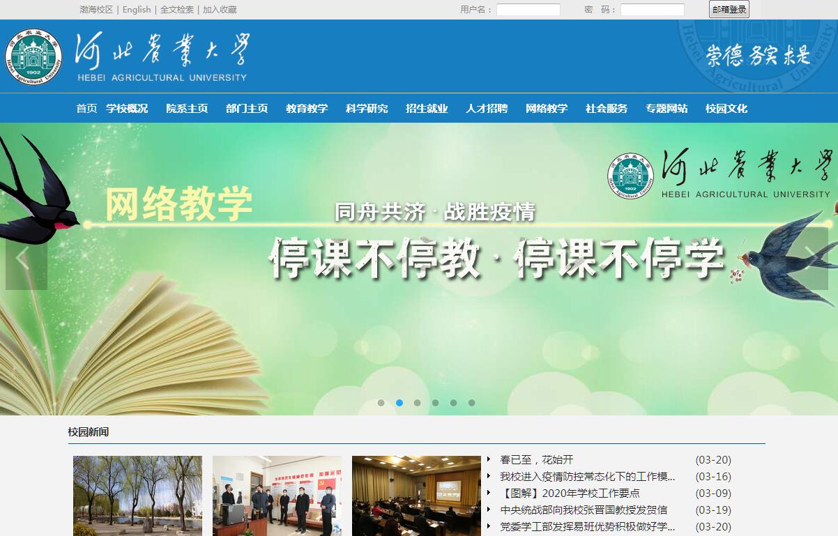 河北农业大学创建于1902年,是我国最早实施高等农业教育的院校,河北省建立最早的高等院校,先后经历了直隶农务学堂、直隶高等农业学堂、河北省立农学院、河北农业大学等历史时期。办学之初,学校就提出了“农业教育非实习不能得真谛,非试验不能探精微,实习试验二者不可偏废”的办学理念。116年来,积淀形成了“崇德、务实、求是”的校训,开创了享誉全国的“太行山道路”,凝结成“艰苦奋斗、甘于奉献、求真务实、爱国为民”的“太行山精神”,受到党和国家的肯定与表彰,被教育部树立为高校战线的一面旗帜。学校是河北省人民政府与教育部、农业部、国家林业局分别共建的河北省重点骨干大学,国家首批创新创业教育改革示范院校,全国第二批双创示范基地,教育部“卓越工程师教育培养计划”实施高校,教育部、农业部、国家林业局首批“卓越农林人才教育培养计划”实施高校,首批入选“中西部高校基础能力建设工程”的高校。学校共有5个校区(保定东校区、保定西校区、秦皇岛校区、定州校区、渤海校区),校园占地181万余平米(2700余亩),建筑面积近129万平方米;纸质型图书与文献247余万册;固定资产24.9亿元;附属实验农场3700余亩,林场40000余亩。学校现有全日制本科生28214名,硕士研究生2155名,博士研究生294名,外国留学生18名。在职教职工3000余人,其中教授及相应职称者434人,副教授及相应职称者841人;博士生导师190人,硕士生导师511人;拥有国家百千万人才工程、国家万人计划、国务院政府特殊津贴、省管专家等人才99人次,国家级教学名师3人,省级教学名师11人。学校设有26个学院,2个直属系,现有1个国家重点(培育)学科,3个部级重点学科,4个学科列入河北省“双一流”学科建设序列,4个河北省强势特色学科,16个河北省重点学科;6个博士后科研流动站;11个一级学科博士点,1个博士专业学位授权类别;24个一级学科硕士点,9个硕士专业学位授权类别,6个工程硕士领域;设有89个本科专业,形成了以农学优势学科为引领,“工、管、理、经、文、法、艺术”等学科“入主流,有特色”,多学科交叉融合、协调发展的学科专业体系。农业科学学科进入ESI全球排名前1% 。学校致力于培养具有创新创业精神和较强实践能力的高级专业人才,全面实施“311”人才培养模式和学分制教学管理制度,率先在全国制定实施本科专业实践能力培养路线图,具有国家级“本科教学工程”建设项目23个,省级项目109个,位居河北高校前列。获国家级教学成果特等奖、一等奖、二等奖共计8项,省级教学成果奖92项。大力推进创新创业教育,建设国家首批农科教合作人才培养基地6个。学校本科毕业生就业率连年位居省属高校前列,是全国毕业生就业典型经验高校,进入全国就业工作50强。学校大力推进科技创新,有1个国家级工程技术研究中心——“国家北方山区农业工程技术研究中心”,45个省部级重点实验室(工程中心、基地、试验站、协同创新中心); 现代农业产业技术体系专家国家级19名、省级57名。“十二五”以来,承担国家和省部级重大科技项目1192项,到位科研经费8.16亿元,审定新品种61个,专利396项,三大索引论文2080篇。获省部级以上科技奖励300项,其中国家二等奖5项、何梁何利产业创新奖1项、省突出贡献奖1项、省山区创业突出贡献奖2项、省部一等奖27项。出版《河北农业大学学报》等学术期刊。近年来,学校积极深化和拓展“太行山道路”,新建新农村发展研究院和技术转移中心等国家级科技转化机构,入驻国家(保定)大学科技园;推广新成果、新品种和新技术1000余项,创造社会、经济效益100多亿元;先后与长城汽车股份有限公司、山东登海先锋种业有限公司、保定农垦总公司等大型企业集团进行合作办学或战略合作,与保定市、邢台市、衡水市、石家庄市及河北省气象局等地方政府及部门签订战略合作协议;建立教学、科研、生产“三结合”基地295个,区域综合试验站10个,现代农业教育科技创新示范基地41个,有力促进了地方经济发展。学校与33所国(境)外高校建立了学术交流和校际合作关系,在专业建设、课程建设、师资交流、学生培养等方面开展了广泛合作。与荷兰应用科学大学、美国加州大学河滨分校、加拿大英属哥伦比亚大学等22所国外院校或机构开展了合作项目;与罗马尼亚布加勒斯特农业与兽医药大学、乌克兰国立化工大学、乌克兰国立文尼察大学、斯洛伐克农业大学等5所“一带一路”沿线国家高等院校建立了国际教育交流与合作关系;通过承办商务部援外培训项目先后培训发展中国家学员552名。学校党的建设和思想政治工作成效显著。两次被授予全国“党的建设和思想政治工作先进普通高校”称号;三次被授予“全国先进基层党组织”称号;2011、2015年两次被评为“全国文明单位”;2013年荣获全国“五一劳动奖状”。涌现出了受到习近平总书记批示,被称为新时期共产党人的楷模、知识分子的优秀代表、太行山上的新愚公的李保国教授;被誉为“社会主义核心价值观”生动诠释的“果树9301班”优秀毕业生群体等一批具有较大社会影响力的先进典型。新时期的河北农业大学,将紧紧抓住国家“双一流”建设的有利时机,立足京津冀,对接雄安新区,深化拓展“太行山道路”,弘扬“太行山精神”,按照学校新的规划目标和战略思路,奋力建设特色