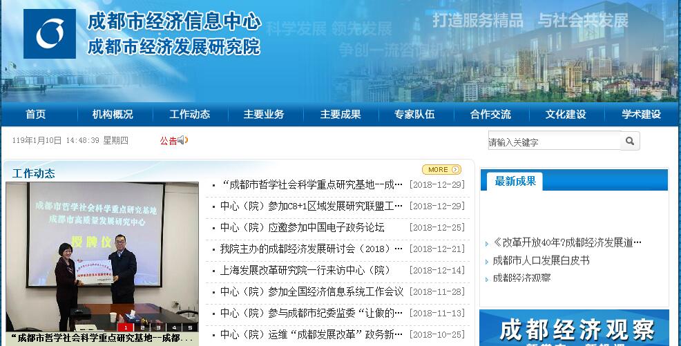成都市经济信息中心成立于1986年,2006年在成都市经济信息中心基础上增挂成都市经济发展研究院(以下简称“中心(院)”),是国家经济信息系统(SEIS)的重要组成部分,是成都市发展和改革委员会直属事业单位,主要从事政府决策咨询和信息技术服务。现有15个部所,在职员工130余人,其中博士、硕士及拥有中、高级职称的占70%以上。中心(院)自成立以来,紧密围绕市委市政府中心工作,市发改委重点工作,以打造成都特色新型智库为目标,逐步形成了经济研究咨询、信息化研究及系统建设、大数据与竞争情报三大业务体系。其一,经济研究咨询围绕经济运行监测预警和预测分析,对影响经济运行重点指标进行监测预警,对经济运行趋势进行预判;开展重大问题研究工作,紧扣经济社会发展热点、难点、重点问题开展前瞻性、战略性研究;开展重大规划编制工作,为政府编制战略发展规划、中长期规划、区域发展规划及产业发展规划提供专业服务;开展专项方案、专题报告编制工作。其二,信息化研究及系统建设围绕智慧城市、智慧政府、信息产业、大数据等重点领域开展研究与咨询服务;以项目建设聚焦数据、促进应用为导向,开展系统平台和政府网站建设及运维工作;坚持信息技术和经济研究咨询融合发展,建设宏观经济、投资、项目、价格、基础地理等数据库,为经济决策提供丰富的数据资源。其三,大数据与竞争情报以对标城市竞争情报研究为方向,开展苗头性、倾向性、潜在性问题“研前”信息分享,构建重大改革、重点城市、重点领域为一体的信息情报监测体系,为政府提供情报参谋服务;以特大城市大数据治理研究为方向,开展政府科学决策、精准治理、便利服务三类大数据分析,构建战略关注度、市民需求度、施政满意度为特色的大数据应用体系,为成都经济社会发展提供“非统计”数据的创新决策支持。