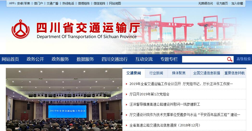 四川省交通运输厅主要职责:(一)贯彻执行国家有关交通运输行业的方针、政策和法律、法规。组织拟订并监督实施公路、水路等行业规划、政策和标准,会同有关部门组织编制综合运输体系规划,参与拟订物流业发展战略和规划。(二)拟订全省交通运输地方性法规、规章草案,负责本系统、本部门依法行政工作,落实行政执法责任制。指导公路、水路行业有关体制改革工作,承担全省高速公路统一管理的有关工作。(三)承担道路、水路交通运输市场监管责任,组织制定道路、水路运输有关政策、技术标准和运营规范并监督实施,指导城乡客运管理工作,指导出租汽车行业管理工作,会同有关部门制定运输价格。(四)承担水上交通安全监管责任。负责水上交通管制、运输船舶及相关水上设施检验、登记和防止污染、救助打捞、通讯导航、危险品运输的监督管理工作,负责船员管理相关工作。指导水上交通安全事故、船舶及相关水上设施污染事故的应急处置,依法组织或参与事故调查处理工作。(五)负责提出公路、水路固定资产投资规模和方向、省财政性资金安排建议,按照规定权限审批、核准国家、省规划内和年度计划规模内固定资产投资项目。会同有关部门拟订公路、水路有关规费政策并监督实施,提出有关财政、土地、价格等政策建议。指导交通运输行业审计工作。(六)承担公路、水路建设市场监管责任。拟订公路、水路工程建设相关政策、制度、技术标准并监督实施,组织协调公路、水路有关重点工程建设和工程质量、安全生产监督管理工作。负责对交通行业和产业项目的招标投标活动的监督执法。指导交通运输基础设施管理和维护,承担有关重要设施的管理和维护。按规定负责港口规划和港口岸线使用管理工作,指导交通运输行业特许经营管理,会同有关部门组织实施交通运输行业职业资格管理工作。(七)指导公路、水路行业安全生产和应急管理工作。按规定组织协调国家及省重点物资和紧急客货运输,负责全省高速公路及重点干线路网运行监测和协调。组织协调地方交通战备工作,承担国防动员有关工作。(八)制定交通运输科技政策并监督实施,组织重大科技开发。指导全省交通运输信息化建设,监测分析运行情况,开展相关统计工作,发布有关信息。指导公路、水路行业环境保护和节能减排工作。(九)负责公路、水路有关涉外工作,开展对外经济技术交流与合作,指导全省交通运输行业招商引资和利用外资工作。(十)承担省政府公布的有关行政审批事项。(十一)承办省政府交办的其他事项。