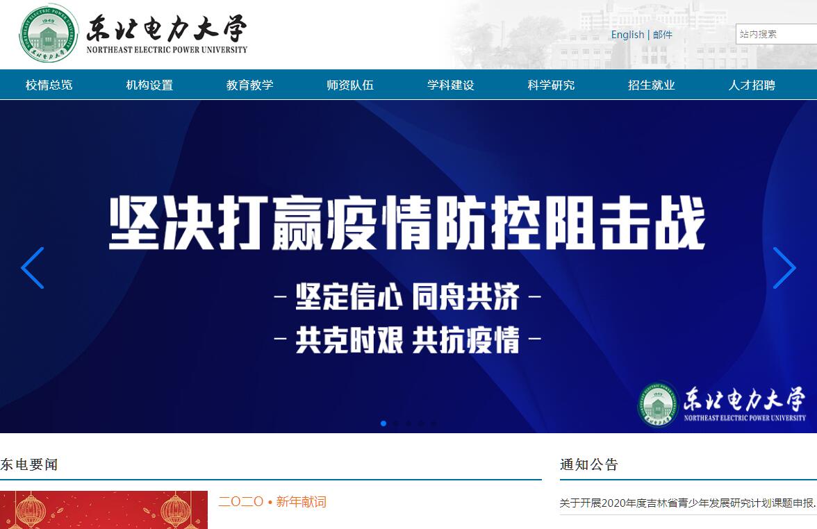 东北电力大学坐落在风景秀美的吉林省吉林市。学校是吉林省重点大学,始建于1949年,是新中国建立的第一所电力工科学校,1958年定名为吉林电力学院,1978年更名为东北电力学院。原隶属电力部、国家电力公司,2000年起,实行“中央与地方共建,以地方管理为主”的管理模式,2005年学校更名为东北电力大学。2012年学校入选为国家“中西部高校基础能力建设工程”重点建设高校。学校坚持以人才培养、科学研究、社会服务、文化传承与创新为己任,主动适应国家电力工业和吉林省的经济建设需求,形成了以电力特色为主,多学科交叉融合,较为完整的学科体系。学校共有14个学院,46个本科专业,涵盖了工、理、管、文、法、经、教育、艺术8个学科门类。学校是博士学位授权单位,有电气工程、动力工程及工程热物理、控制科学与工程3个博士学位授权一级学科,1个博士后流动站,有14个硕士学位授权一级学科,49个硕士学位授权二级学科,有吉林省优势特色重点学科6个,其中吉林省重中之重重点学科2个,有工程硕士(含7个授权领域)、体育硕士、翻译硕士、会计硕士4个硕士专业学位授权类别,具有硕士研究生推免权。学校现有全日制在校生近19000人。学校有教职工1400余人,拥有高级职称人员500余人,其中中国工程院院士2人(双聘),国家万人计划第一批人选2人,全国杰出专业技术人才2人,国家级有突出贡献的中青年专家3人,百千万人才工程国家级人选5人,国务院政府特殊津贴获得者36人,国家级教学名师1人。拥有“教育部长江学者和创新团队发展计划”创新团队2个,国家级教学团队2个,首批“全国高校黄大年式教师教学团队”1个。学校坚持教学工作中心地位不动摇,积极构筑并不断优化创新人才培养体系。现有国家级特色专业5个,国家级精品课程4门,国家级实验教学示范中心2个,国家级虚拟仿真实验教学中心1个,吉林省实验教学示范中心10个。近年来,学校获国家级优秀教学成果奖3项。学校是国家大学生文化素质教育基地、全国社会体育人才培训和科研基地,首批国家级工程实践教育中心建设单位,“卓越工程师教育培养计划”试点高校,国家级专业技术人员继续教育基地。学校始终坚持“面向国家重大需求、积极服务地方经济社会发展”的科研方针,不断提高学术研究水平、科技创新能力。学校有国家地方联合工程实验室2个,国家大学科技园1个,教育部重点实验室(工程研究中心)2个,吉林省重大需求协同创新中心4个,吉林省院士工作站1个,省级重点实验室、研究中心、文科基地等25个。近年来,学校承担包括国家科技部重点研发计划、国家973计划项目、863计划项目、国家科技支撑计划项目、国家科技重大专项、国家重大科学仪器设备开发专项、国家自然科学基金重点项目等各级各类科研课题1800余项,取得了一大批高水平研究成果,获国家科技进步二等奖3项,省部级及以上科研成果奖143项,为推动科技进步以及电力工业和地方经济建设与发展作出了重要贡献。学校先后与美国、日本、英国、俄罗斯、韩国、德国等国的高校或科研机构开展了多种形式的科技和学术交流。1998年获批培养外国留学生。2000年,国务院学位办批准学校与美国犹他州立大学合作举办国际经济与贸易专业本科教育项目。2012年,教育部批准学校与英国史萃克莱德大学合作举办电气工程及其自动化专业本科教育项目。2011年,学校获批为国家留学基金委青年骨干教师出国研修项目实施院校。2013年,经教育部批准成为中国政府奖学金来华留学生接受院校。近年来,学校被授予全国文明单位、全国厂务公开民主管理先进单位、全国民族团结进步模范集体、全国模范职工之家、“全国毕业生就业典型经验50强高校”、吉林省先进基层党组织等荣誉称号。涌现出全国先进工作者、全国优秀科技工作者、全国职工职业道德建设先进个人、全国三八红旗手、全国优秀思想政治工作者、全国优秀党务工作者等一大批先进教师群体和以全国大学生自强之星标兵等为代表的优秀大学生群体。“十三五”期间,学校以办人民满意大学,培养社会主义事业合格建设者和可靠接班人为目标,深入实施“人才强校、创新驱动、特色发展、开放合作”战略,继续解放思想,与时俱进,开拓创新,为建设特色鲜明的高水平教学研究型大学而不懈奋斗。