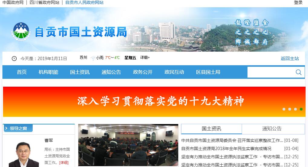自贡市国土资源局(简称市国土资源局),为自贡市人民政府工作部门,挂自贡测绘地理信息局和自贡市不动产登记局牌子。其主要职责:(一)贯彻执行国土资源法律、法规和有关调控政策、措施,承担保护与合理利用全市土地资源、矿产资源等自然资源的责任。开展国土资源经济形势分析,研究提出全市国土资源供需总量平衡的政策建议。参与宏观经济运行、区域协调、城乡统筹的研究,拟订涉及国土资源的调控政策和措施。编制并组织实施国土规划,制定并组织实施我市国土资源领域资源节约集约利用和循环经济的政策措施。(二)承担规范全市国土资源管理秩序的责任。起草全市土地资源、矿产资源、测绘管理等规范性文件草案,制定有关政策并监督实施。制定全市土地、矿产、测绘等管理技术规定和办法。负责本系统依法行政工作,指导全市国土资源依法行政工作,调查处理国土资源违法案件。(三)承担优化配置全市国土资源的责任。编制和组织实施土地利用总体规划、土地利用年度计划、土地开发整理复垦规划、基础测绘规划和其他专项规划、计划。参与审核报市政府审批的城乡规划。指导和审核区县、乡(镇)土地利用总体规划,组织编制矿产资源、地质勘查、地质环境等规划和地质灾害防治、矿山地质环境保护等有关专项规划并监督检查执行情况。参与审核报省政府和市政府审批的涉及土地、矿产的相关规划及调整。(四)负责规范全市国土资源权属管理。依法保护土地资源、矿产资源等自然资源所有者和使用者的合法权益,组织和指导调查处理权属纠纷、土地确权工作,承办各类土地登记资料的收集、整理、共享和查询服务工作。(五)负责落实全市耕地保护的责任,确保规划确定的耕地保有量和基本农田面积不减少。牵头拟订并实施耕地保护政策,组织实施基本农田保护制度,监督占用耕地补偿制度执行情况。监督并指导未利用土地开发、土地整理、土地复垦和耕地开发工作。组织实施土地用途管制、农用地转用和土地征收征用工作,承担报国务院、省政府和市政府审批的各类用地的审核、报批工作。(六)承担提供全市土地利用各种数据的责任。组织实施地籍管理办法,组织开展土地资源调查、地籍调查、土地统计和动态监测、土地登记和土地分等定级工作。(七)承担节约集约利用全市土地资源的责任。拟订并实施土地开发利用标准。组织实施市及区、指导县城乡建设用地供应、政府土地储备、土地开发和节约集约利用。拟订并按规定组织实施土地使用权出让、租赁、作价出资、转让等管理办法,建立基准地价、标定地价等政府公示地价制度。负责对地价评估机构进行备案。会同农业部门监督管理农村集体建设用地使用权的流转。执行国家禁止和限制供地、划拨用地目录。承担报市政府审批的改制企业的国有土地资产处置工作。(八)承担规范全市国土资源市场秩序的责任。监测、监管建设用地利用情况、地价、土地市场和矿业权市场。组织对矿业权人勘查、开采活动进行监督管理,依法查处违法行为。(九)负责全市矿产资源开发和储量管理。依法按权限设置探矿采矿许可,依法管理探矿权、采矿权的转让。负责对矿产资源开发、利用和保护实施监督管理,承办矿产资源评审、登记、统计和矿产资源储量基础管理工作。组织编制实施矿业权设置方案。协助管理地质勘查资质、地质资料、地质勘查成果。(十)承担地质环境保护的责任,组织、协调、指导和监督地质灾害防治工作。指导地质灾害应急处置工作,组织拟订、实施全市突发重大地质灾害应急预案。组织实施矿山地质环境、地质遗迹保护工作,承担监督管理古生物化石、地质遗迹、矿业遗迹等重要保护区、保护地工作。(十一)依法征收资源收益,规范、监督资金使用。拟订全市土地、矿产资源参与经济调控的政策措施。依法组织土地、矿产资源专项收入的征管工作,配合有关部门拟订收益分配制度,配合有关部门指导、监督土地整理复垦开发等专项资金的收取和使用。参与管理土地、矿产等资源性资产和国家、省、市出资形成的矿业权权益,负责有关资金、基金的预算和财务、资产管理与监督工作。(十二)负责测绘工作统一监督管理。构建全市基础地理信息框架、信息系统工作。负责市级基础测绘和其他全市性或重大应急测绘项目的组织和管理工作,承办测绘资质管理和测绘项目备案登记管理工作,规范管理测绘市场和地图市场。负责全市测绘基准和测量控制系统管理及测绘成果的汇交、保管、提供与利用工作。(十三)组织制定全市国土资源科技发展和人才培养规划、计划。推进国土资源信息化和信息资料的公共服务。承担开展对外合作与交流工作。(十四)承担市政府公布的有关行政审批事项。(十五)负责指导监督全市的土地登记、房屋登记、林地登记等不动产登记工作;会同有关部门贯彻落实国家、省不动产登记的法律法规,建立不动产统一登记制度,落实不动产权属争议调处政策;推动不动产登记信息基础平台建设。(十六)依法编制土地利用和矿产资源总体规划,组织保护和合理利用土地、矿产等自然资源;依照国家规定,会同有关部门建立健全土地、矿产等自然资源资产产权、国土空间用途管制等制度;会同有关部门指导国土开发、矿山地质环境保护工