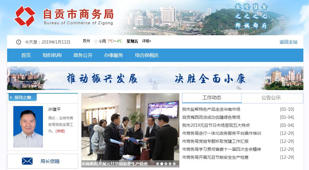 2005年4月,根据《中共四川省办公厅、四川省人民政府办公厅关于印发〈自贡市市、区、县政府机构改革方案〉的通知》(川委厅[2005]5号)和《中共自贡市委、自贡市人民政府关于自贡市市、区、县政府机构改革方案的实施意见》(自委发[2005]10号)精神,撤销自贡市对外贸易经济合作局,组建自贡市商务局。根据《中共四川省委办公厅、四川省人民政府办公厅关于印发〈自贡市人民政府机构改革方案〉的通知》(川委厅〔2010〕23号)和《中共自贡市委、自贡市人民政府印发自贡市人民政府机构改革方案和自贡市人民政府机构改革方案实施意见的通知》(自委发〔2010〕13号),设立自贡市商务局(简称市商务局),为自贡市人民政府工作部门。其主要职责:(一)贯彻落实国家、省有关国内外贸易、外商投资和国际经济合作的法律法规和方针政策,拟订全市实施意见和管理办法;制定全市商务发展规划、年度计划并组织实施。(二)承担全市服务业发展工作中组织实施的协调职责,推进流通产业结构调整,加快第三方物流发展,指导流通企业改革、商贸服务业和社区商业发展,提出促进商贸企业发展的政策建议,推动流通标准化和连锁经营、商业特许经营、加盟发展、物流配送、电子商务等现代流通方式的发展。(三)研究提出引导省内外资金投向市场体系建设的政策,编制大宗产品批发市场规划,指导城市商业网点规划、布局和商业体系建设工作,推进城乡市场体系建设,组织实施城乡现代流通网络工程,促进城乡市场一体化发展。(四)拟订全市商品流通和餐饮服务业的规范性文件,调查研究流通行业重大问题并提出政策建议;负责对美容美发业的指导、协调、监督和管理;负责茧丝绸、拍卖、典当等特种行业的监督管理;负责盐务行政监督管理的相关工作。(五)承担牵头协调全市整顿和规范市场经济秩序工作的责任,拟订规范市场运行和流通秩序的政策,推动商务领域信用建设,指导商业信用销售,建立市场诚信公共服务平台,负责对特殊流通行业进行监督管理。(六)承担组织实施重要消费品市场调控和重要生产资料流通管理的责任,建立健全生活必需品市场供应应急管理机制,监测分析市场运行、商品供求状况,调查分析商品价格信息,进行预测预警和信息引导,按分工负责重要消费品储备管理和市场调控工作。(七)拟订促进转变外贸增长方式的政策措施,指导对外贸易行业执行国家进出口商品、加工贸易管理办法和进出口管理商品、技术目录,组织实施重要工业品、原材料和重要农产品进出口总量计划,会同有关部门协调大宗进出口商品和出口加工区的业务工作,指导贸易促进活动和外贸促进体系建设。(八)依法监督技术引进、设备进口、国家限制出口技术的工作,推进进出口贸易标准化工作,牵头负责发展服务贸易的相关工作,推动服务外包平台建设。(九)拟订应对经济全球化、区域经济合作的对策措施,加强与自由贸易区、港澳台地区的商贸合作,推进贸易和投资便利化。(十)承担组织协调反倾销、反补贴、保障措施和技术性贸易壁垒等与进出口公平贸易相关工作的责任,建立进出口公平贸易预警机制,牵头开展对外贸易调查、产业损害调查和对经营者集中行为的反垄断审查,指导协调产业安全应对、企业在国外的反垄断应诉工作和国外对我市出口商品的反倾销、反补贴、保障措施的应诉工作。(十一)指导全市外商投资促进和管理工作,参与制订外商投资政策和改革方案并组织实施,统计分析全市外商投资情况,依法监督检查外商投资企业执行有关法律法规规章、合同章程的情况并协调解决有关问题,指导协调市内国家、省级经济技术开发区的有关工作。(十二)负责全市对外经济合作工作,拟订并执行对外经济合作政策,依法管理和监督对外承包工程、对外劳务合作和出境就业,承担境外投资管理的责任,牵头负责外派劳务和赴境外就业人员的权益保护工作,组织管理我市承担的国家对外援助任务,管理多双边对我市的无偿援助和赠款(不含财政合作项目下外国政府及国际金融组织对我市赠款)等发展合作业务。(十三)指导并监督管理以自贡市名义在境内外举办的各类商贸交易会、展览会、展销会等活动。(十四)规划全市商务系统电子政务、公共商务信息服务体系建设并组织实施,推动电子商务发展。(十五)承担市政府公布的有关行政审批事项。(十六)承办市政府交办的其他事项。